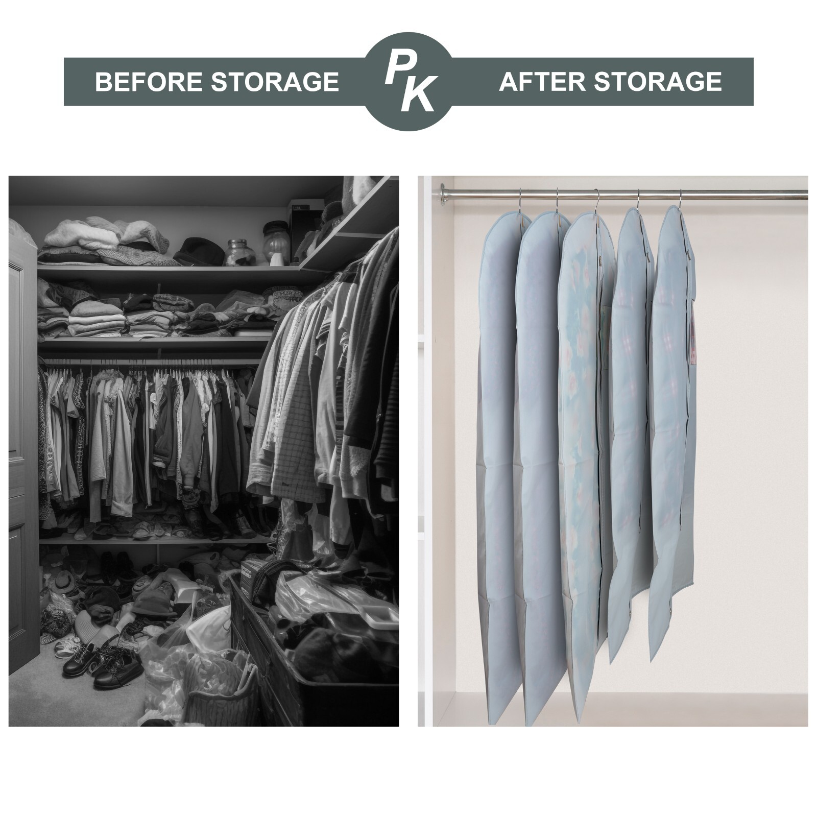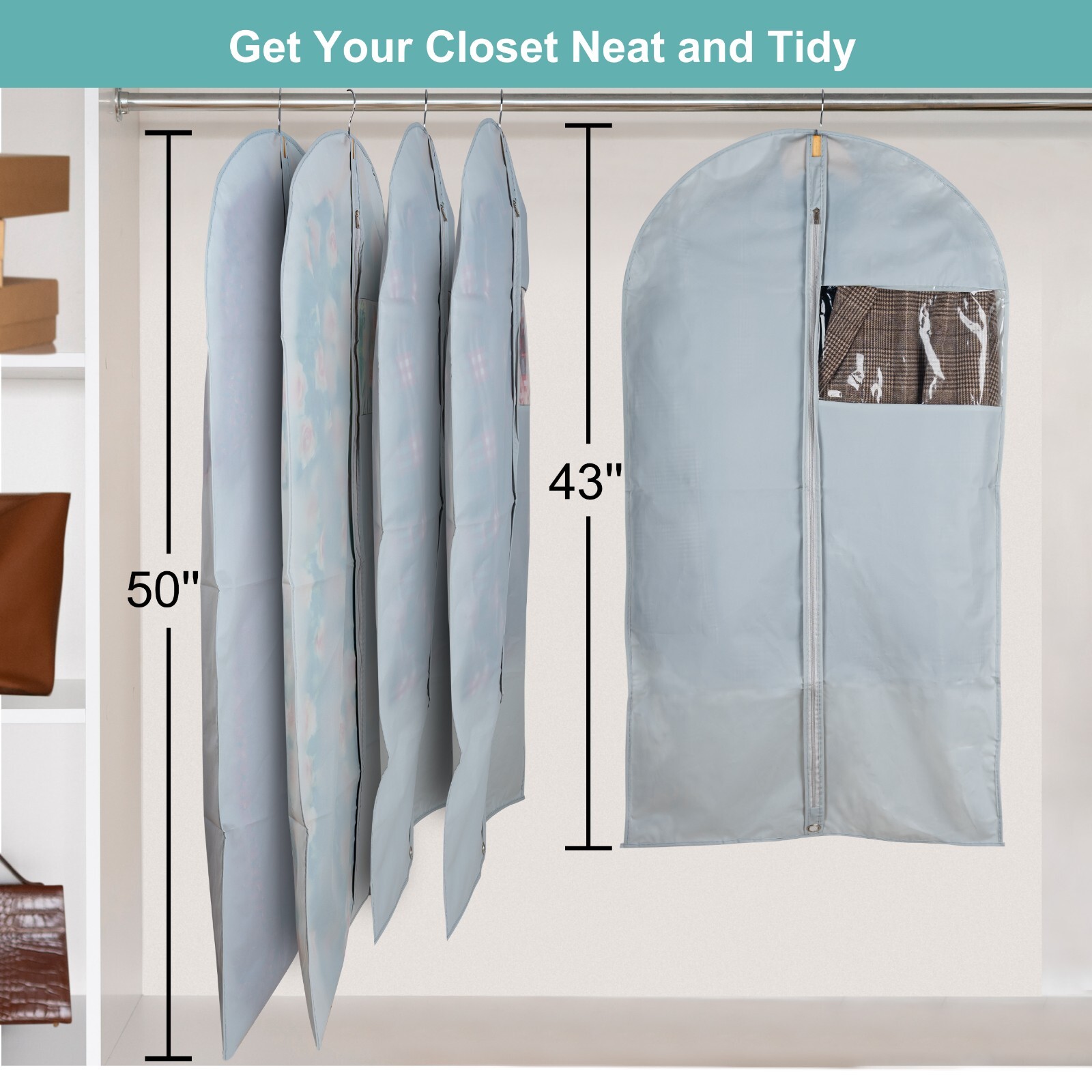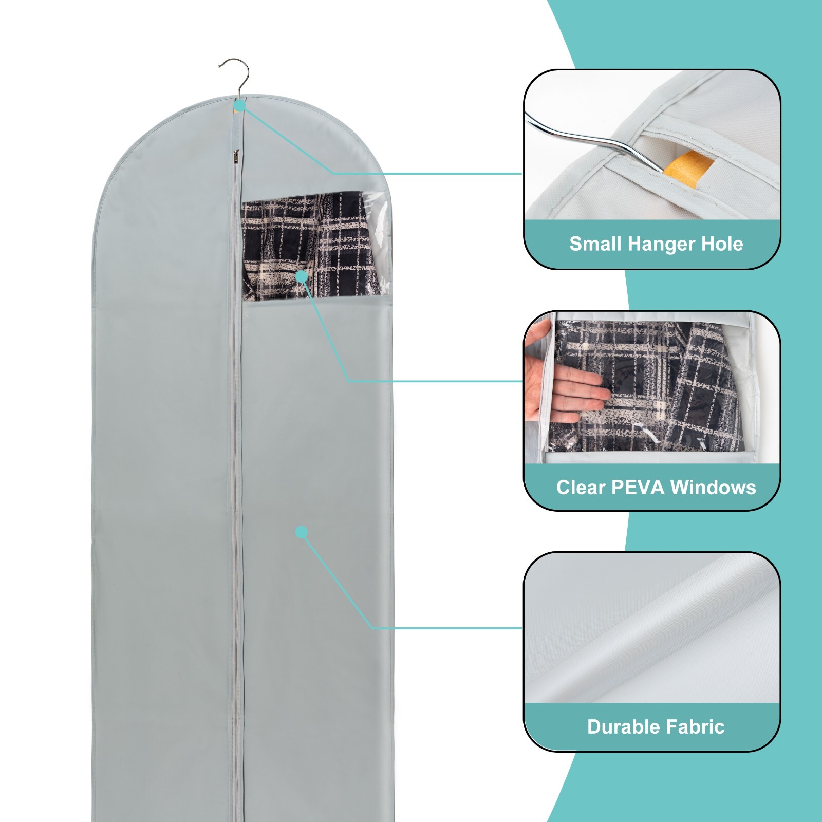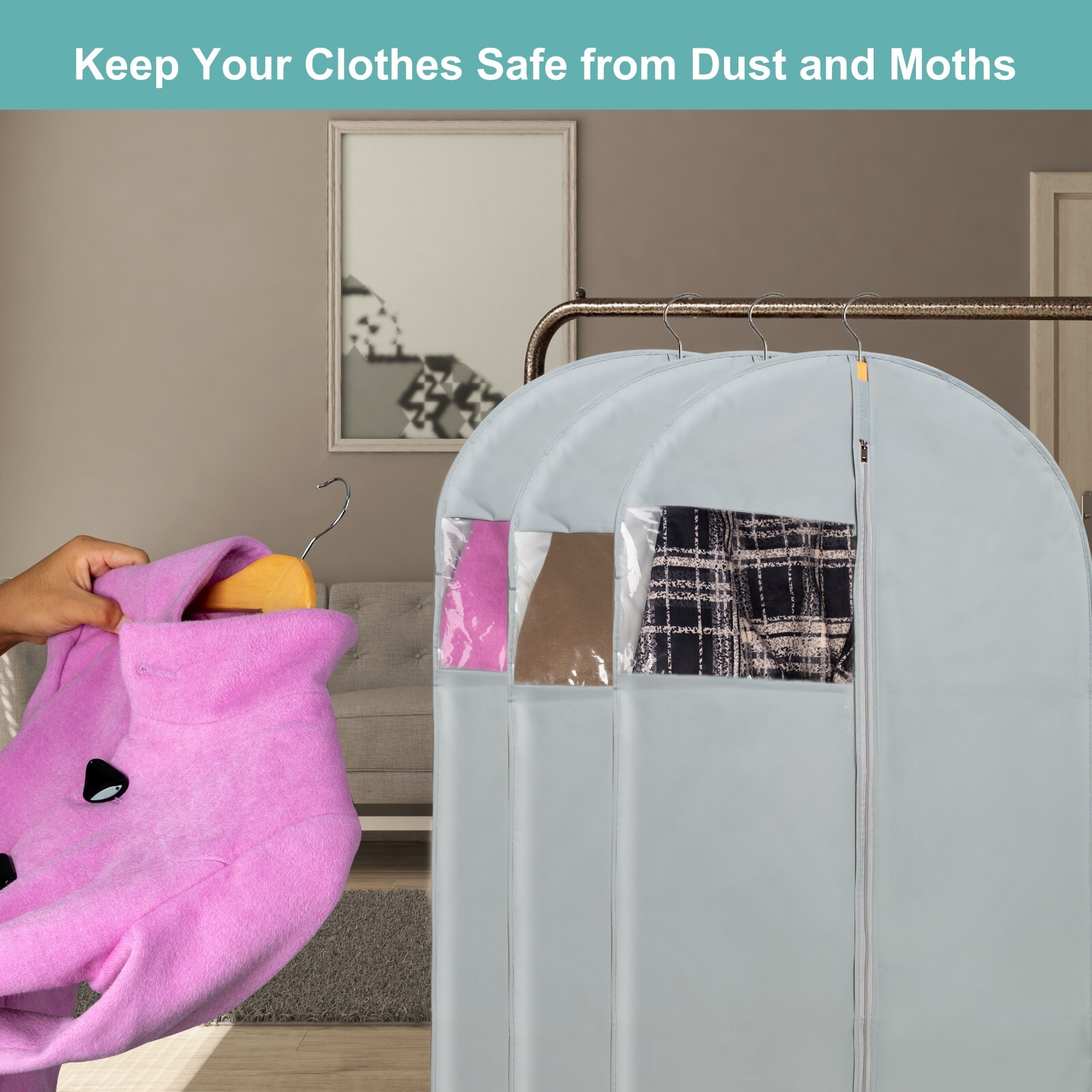 4PCS Gray Garment Bags with Clear Window, Foldable Design, Closet Storage Trav