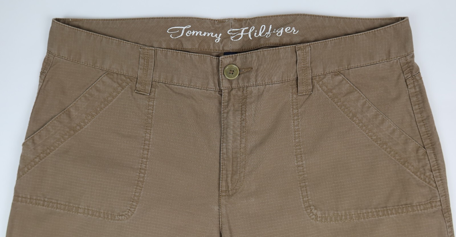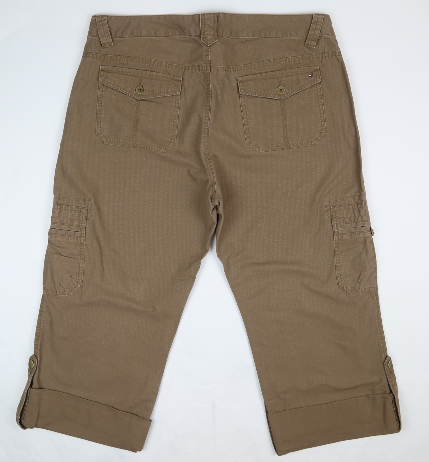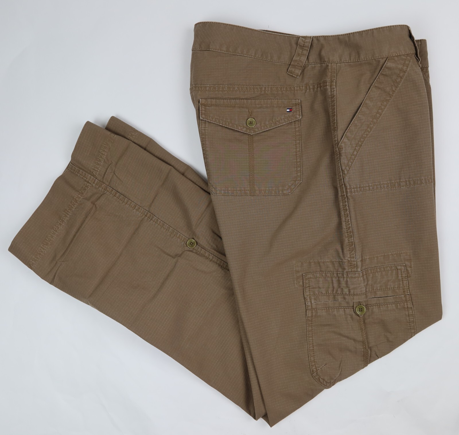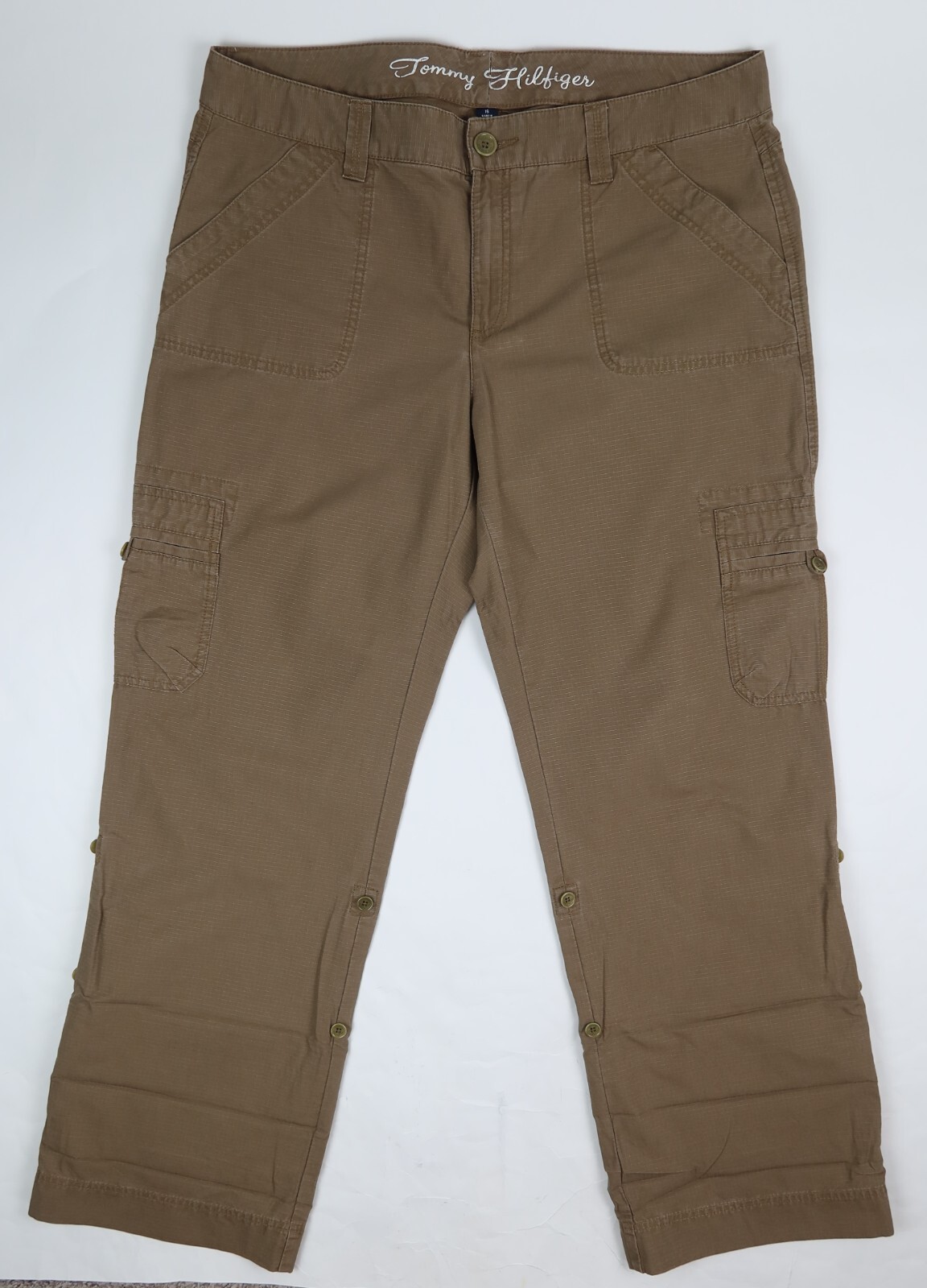 Tommy Hilfiger Women s Rip Stop Roll Tab Convertible Leg Cargo Pants Brown Sz 16