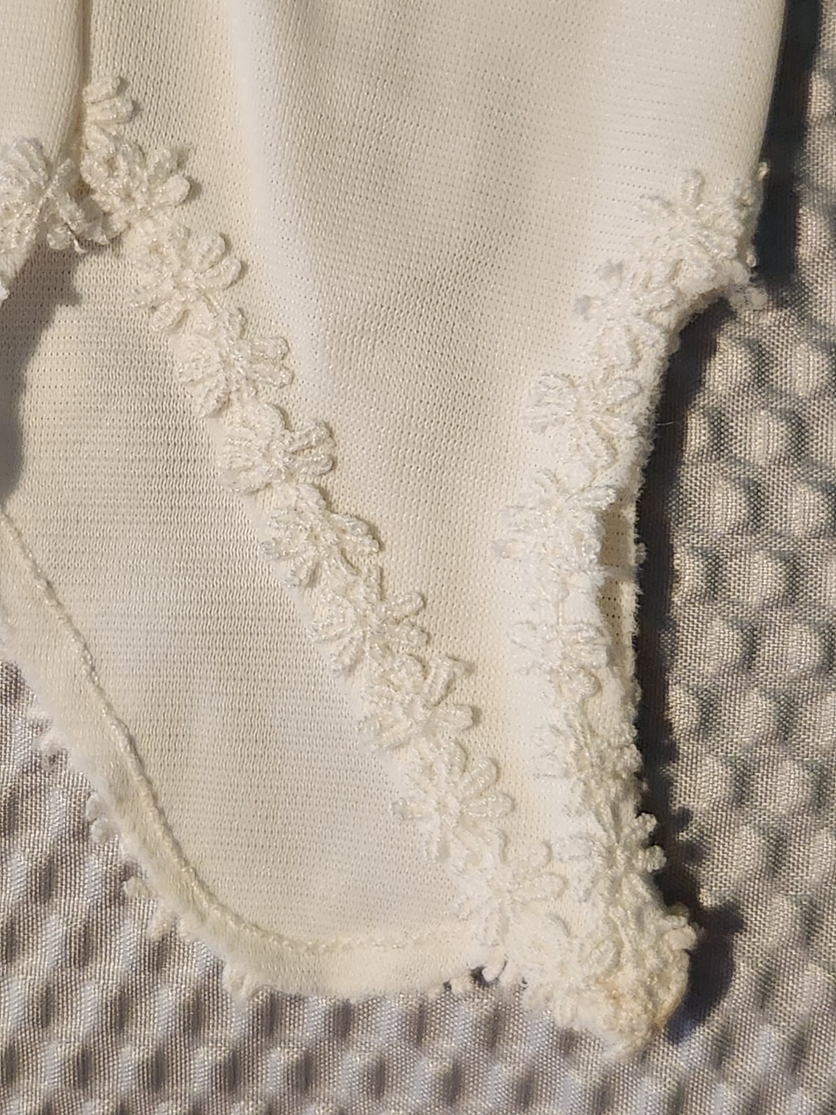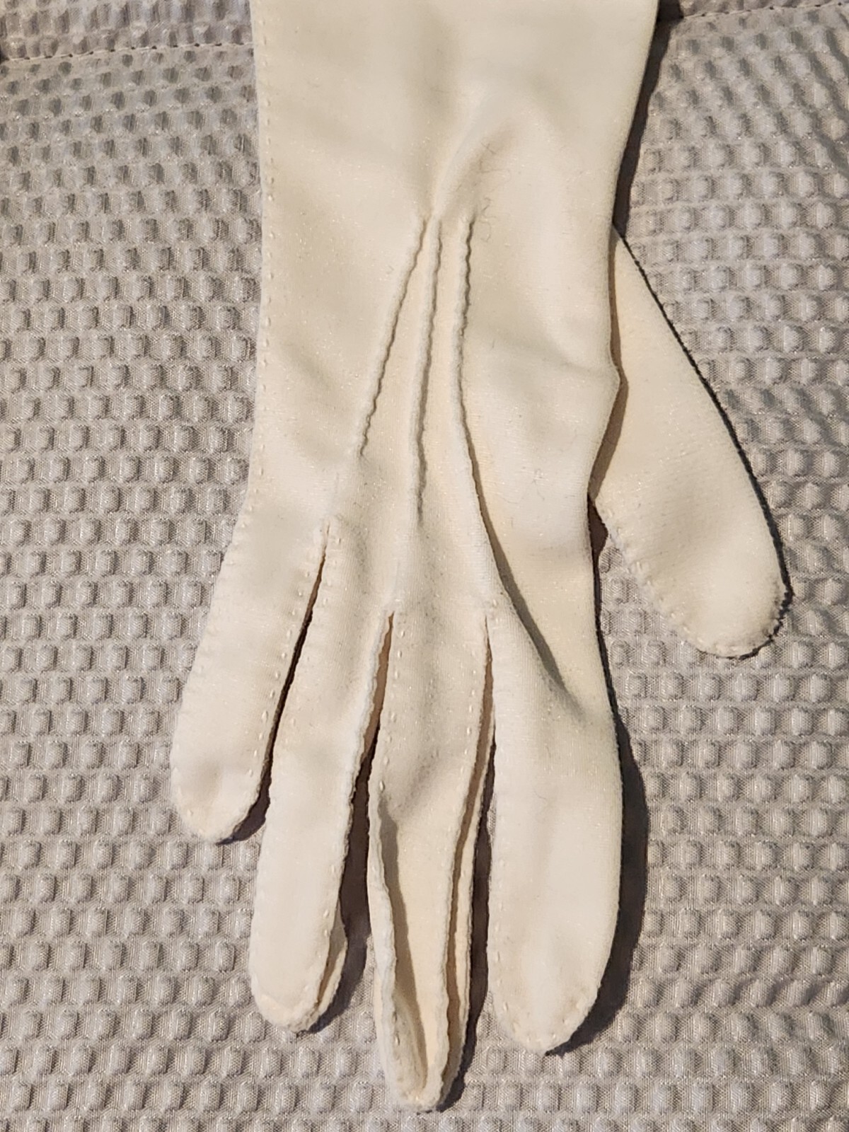 Two pairs of vintage long white ivory gloves fingerless prom flower trim READ