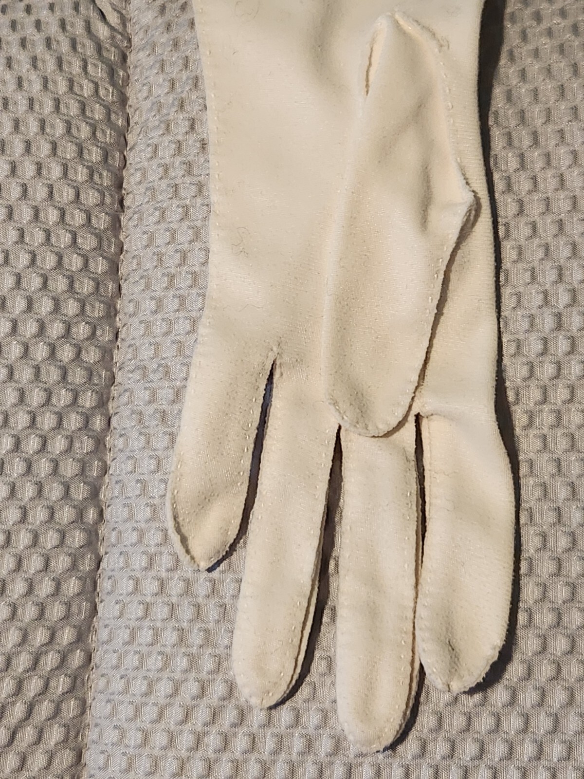 как выглядит Two pairs of vintage long white ivory gloves fingerless prom flower trim READ фото