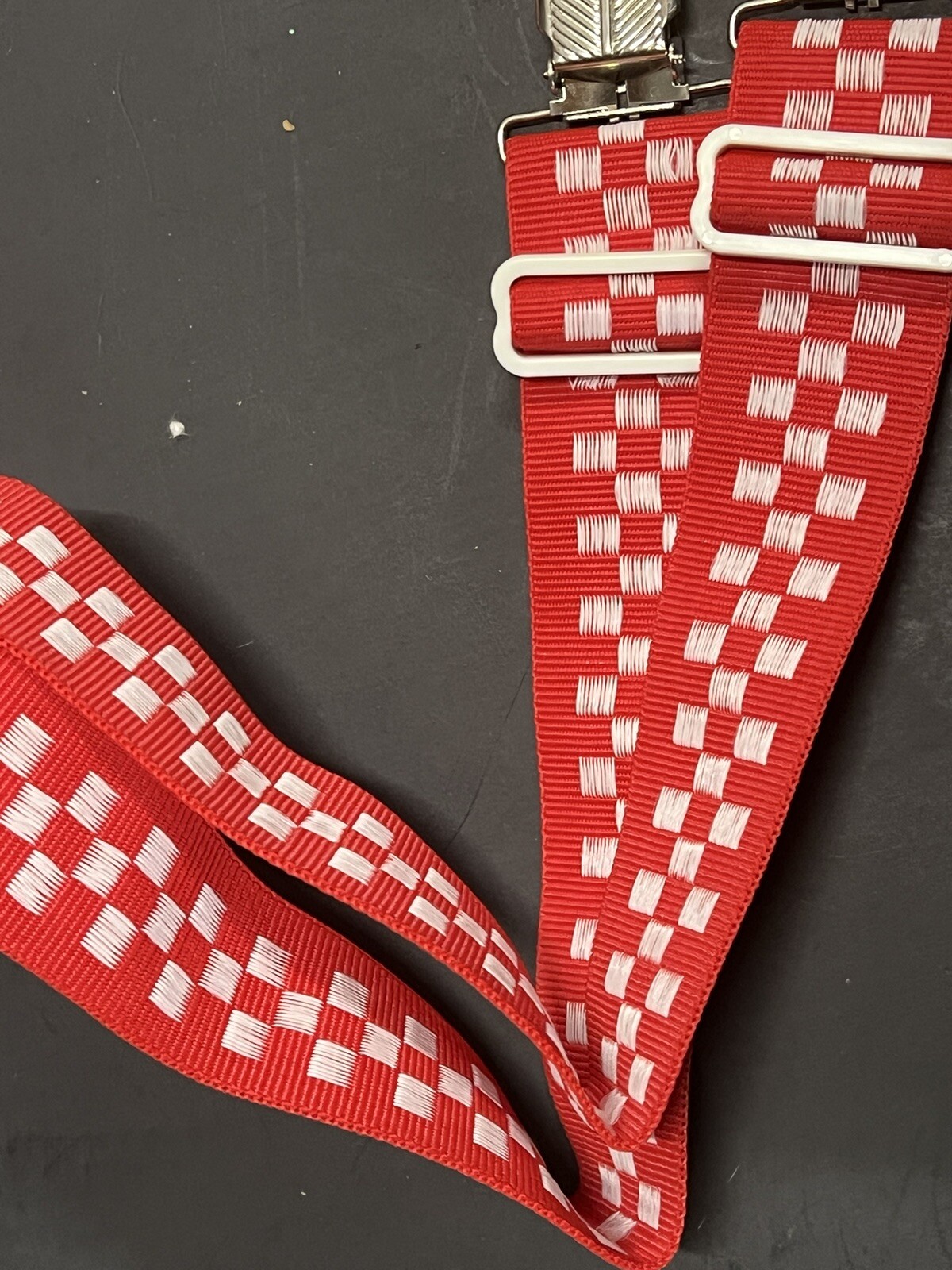 Men's Suspenders X 1-1/2 Red White Checkered with Snaps, Clip, USA PURINA