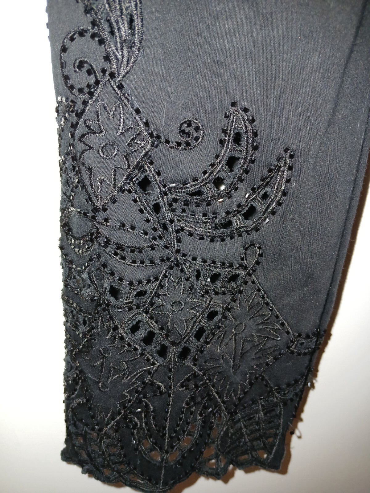 как выглядит Vintage Black CACHE pants beaded cutout embroidered legs 8 фото