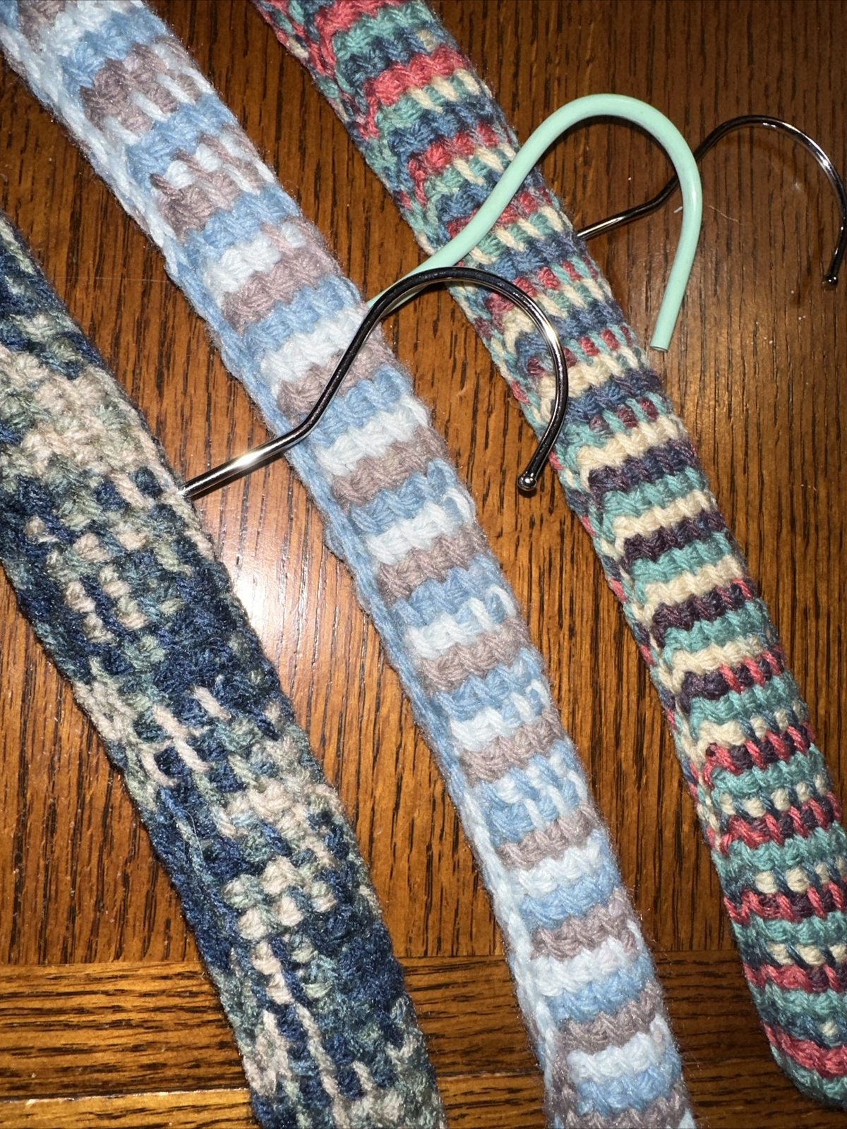 Lot Of 3 Vintage Crochet Handmade Clothes Hangers Yarn Covered Cottagecore Y2K