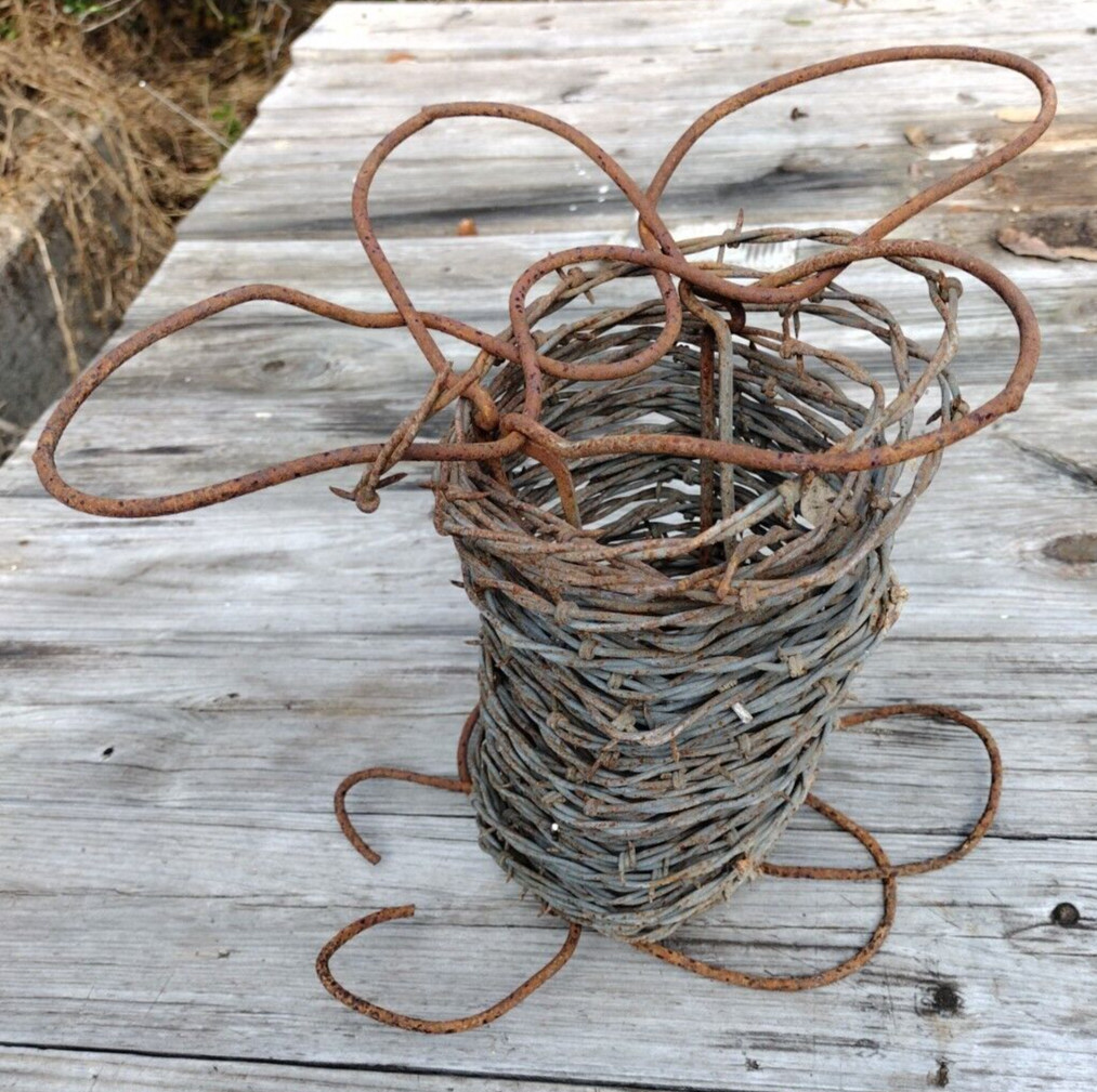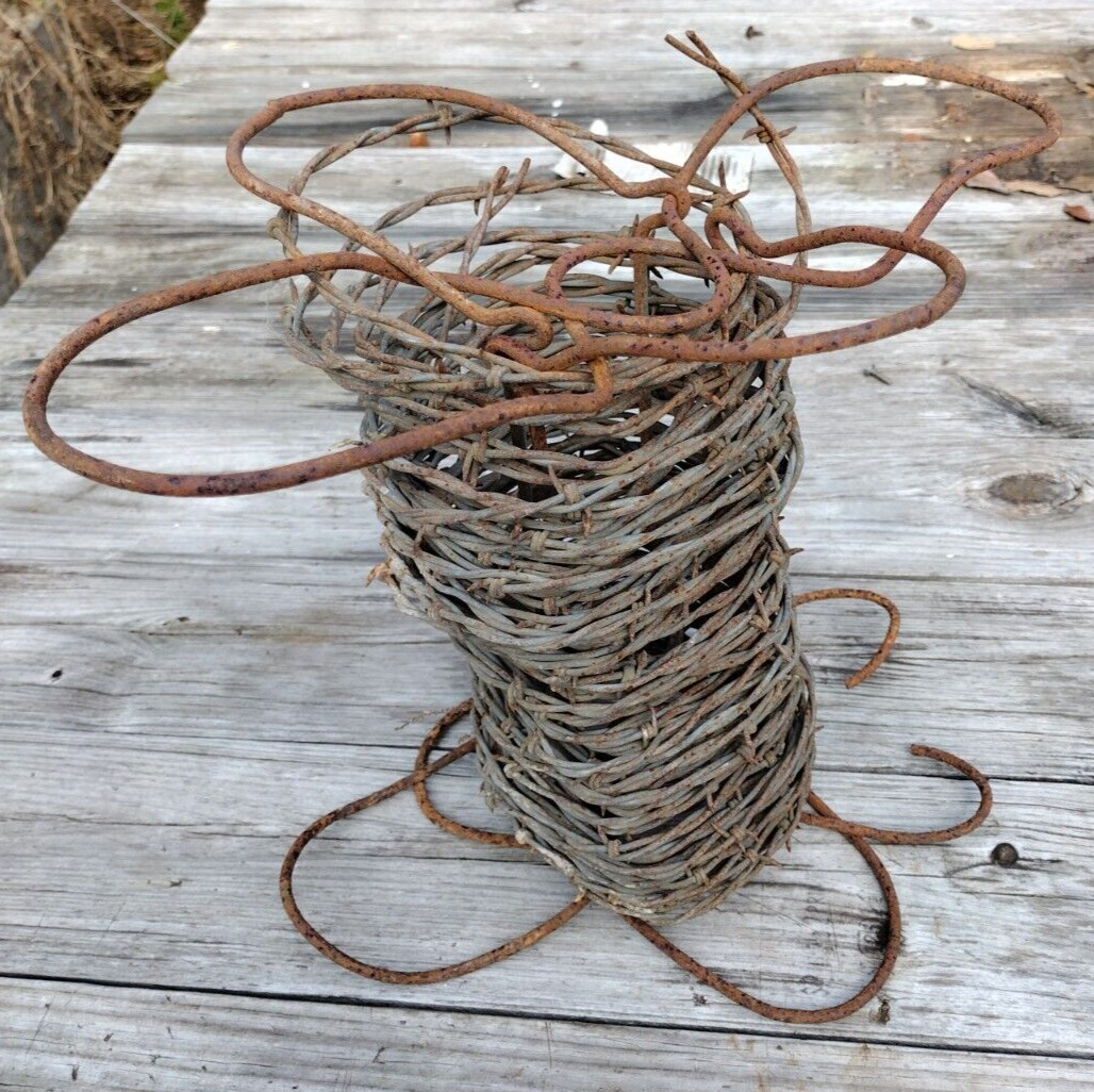 • VINTAGE BARBED BARB WIRE ROLL SPOOL FOR DECORATION