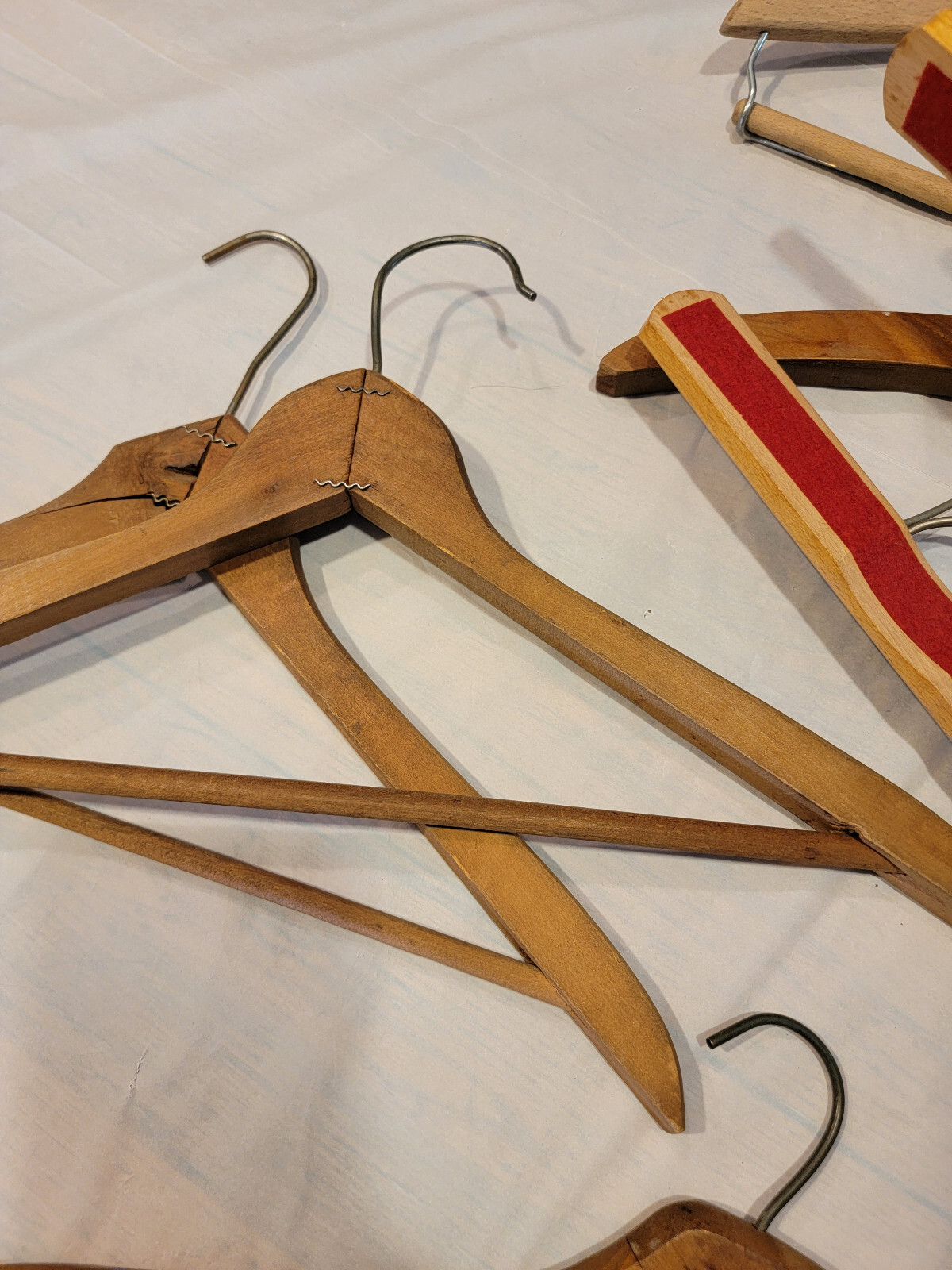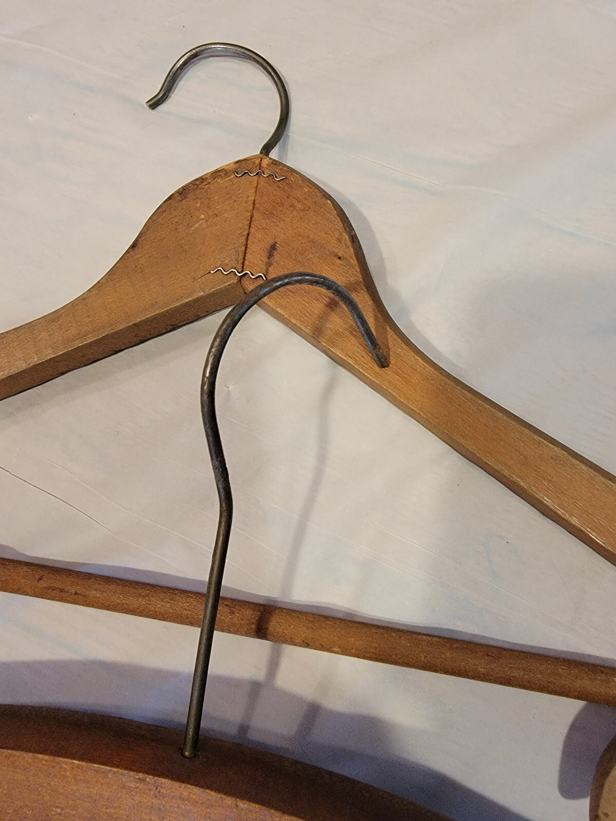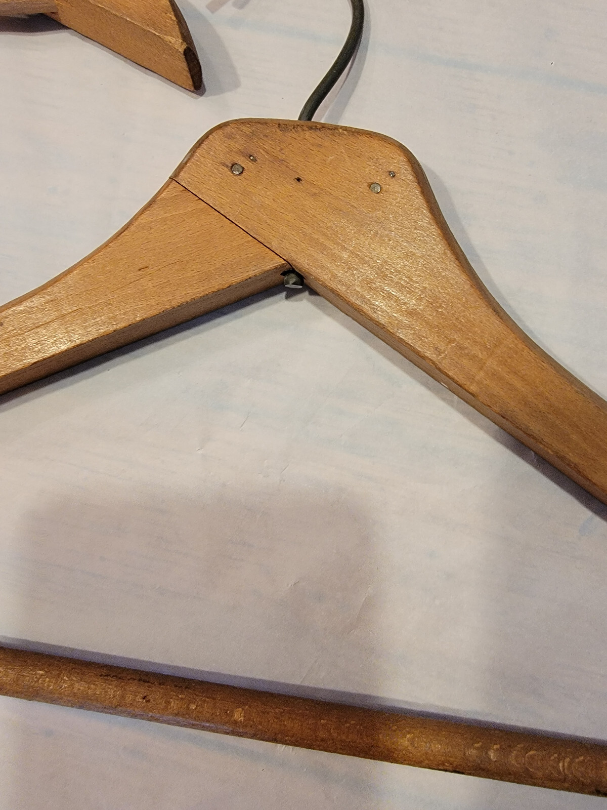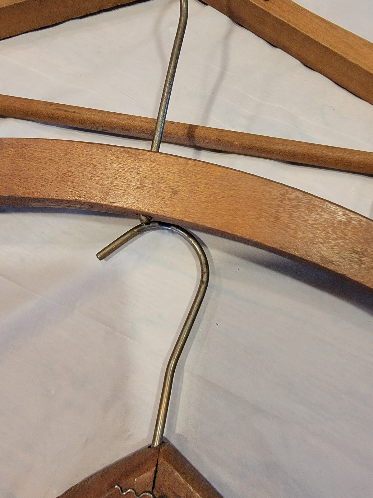Vintage lot of 5 wooden hangers, one for pants,marked Kresco