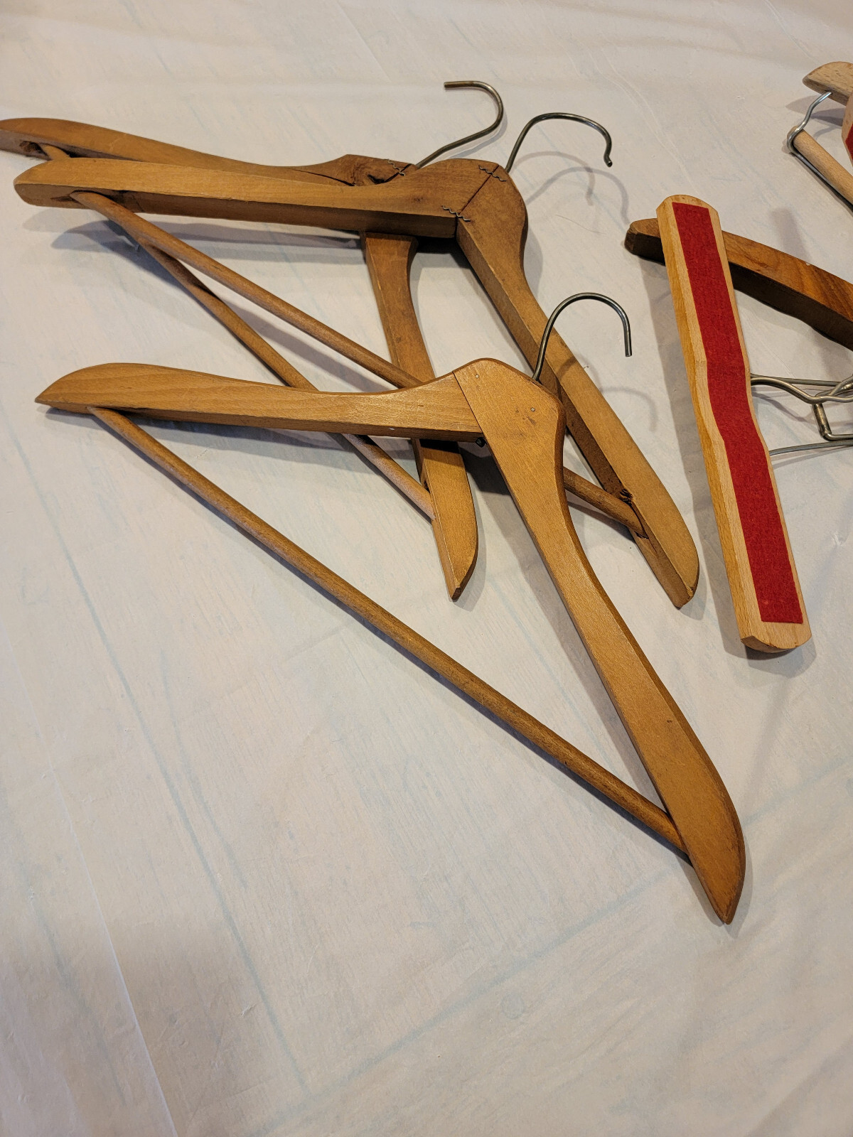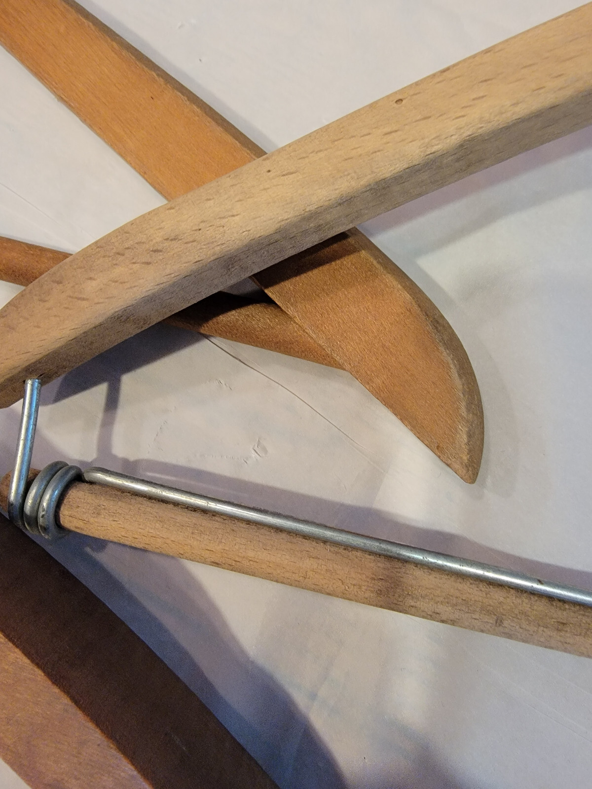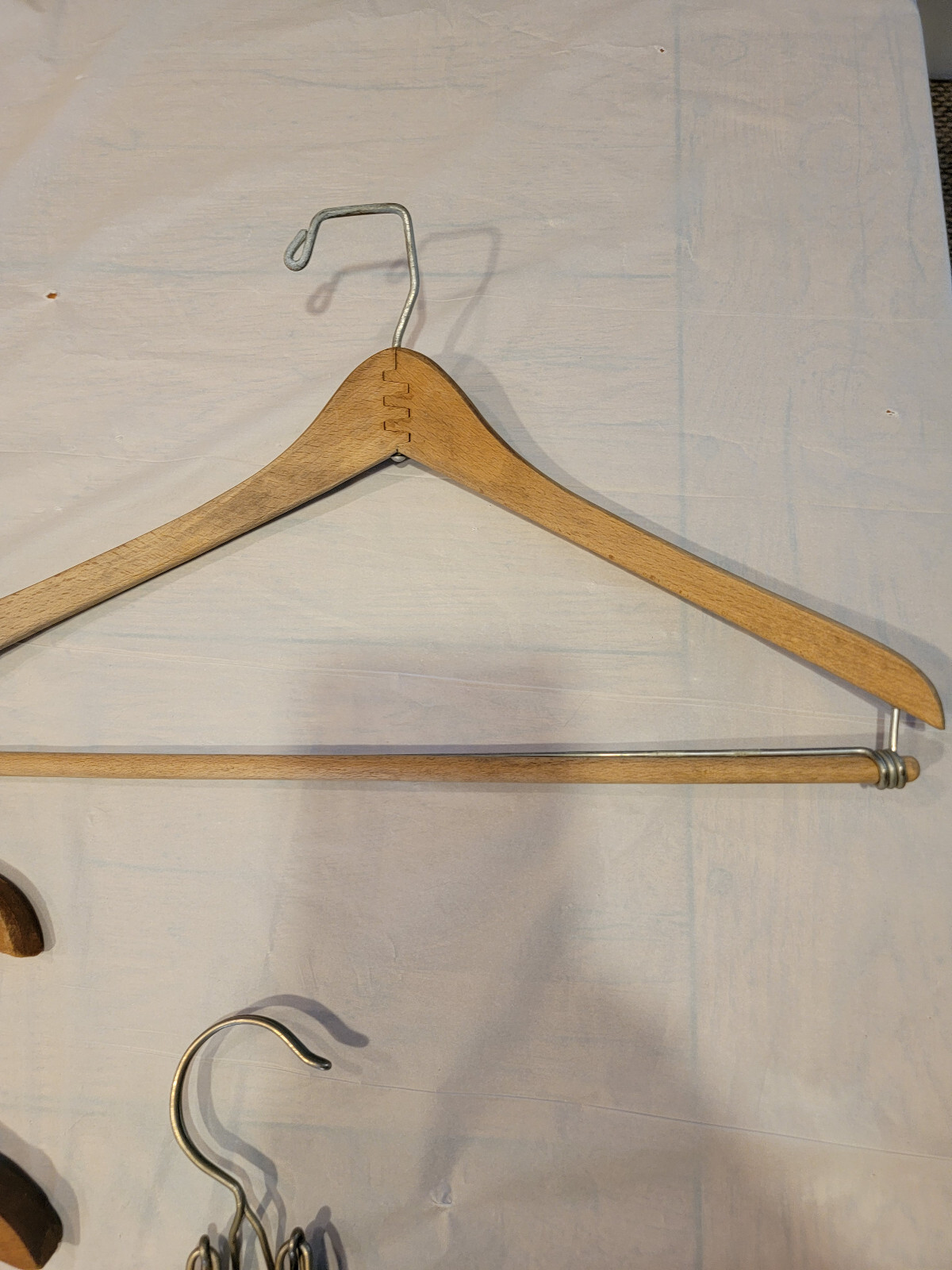 как выглядит Vintage lot of 5 wooden hangers, one for pants,marked Kresco фото