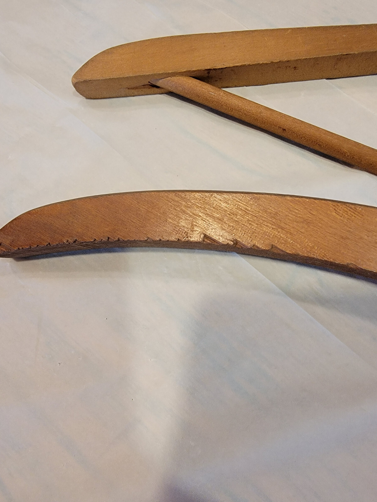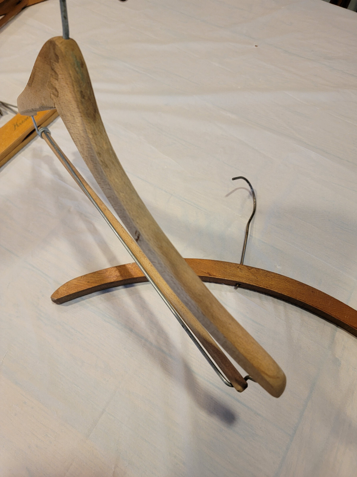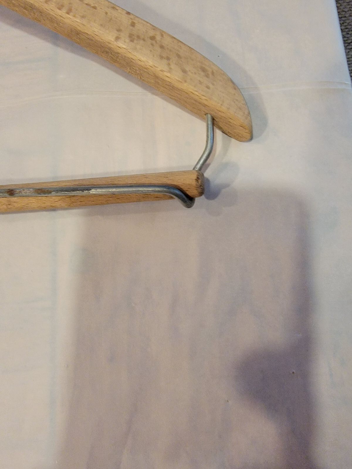 как выглядит Vintage lot of 5 wooden hangers, one for pants,marked Kresco фото