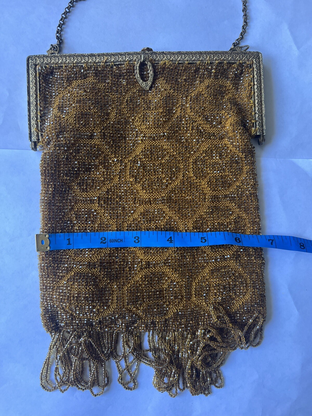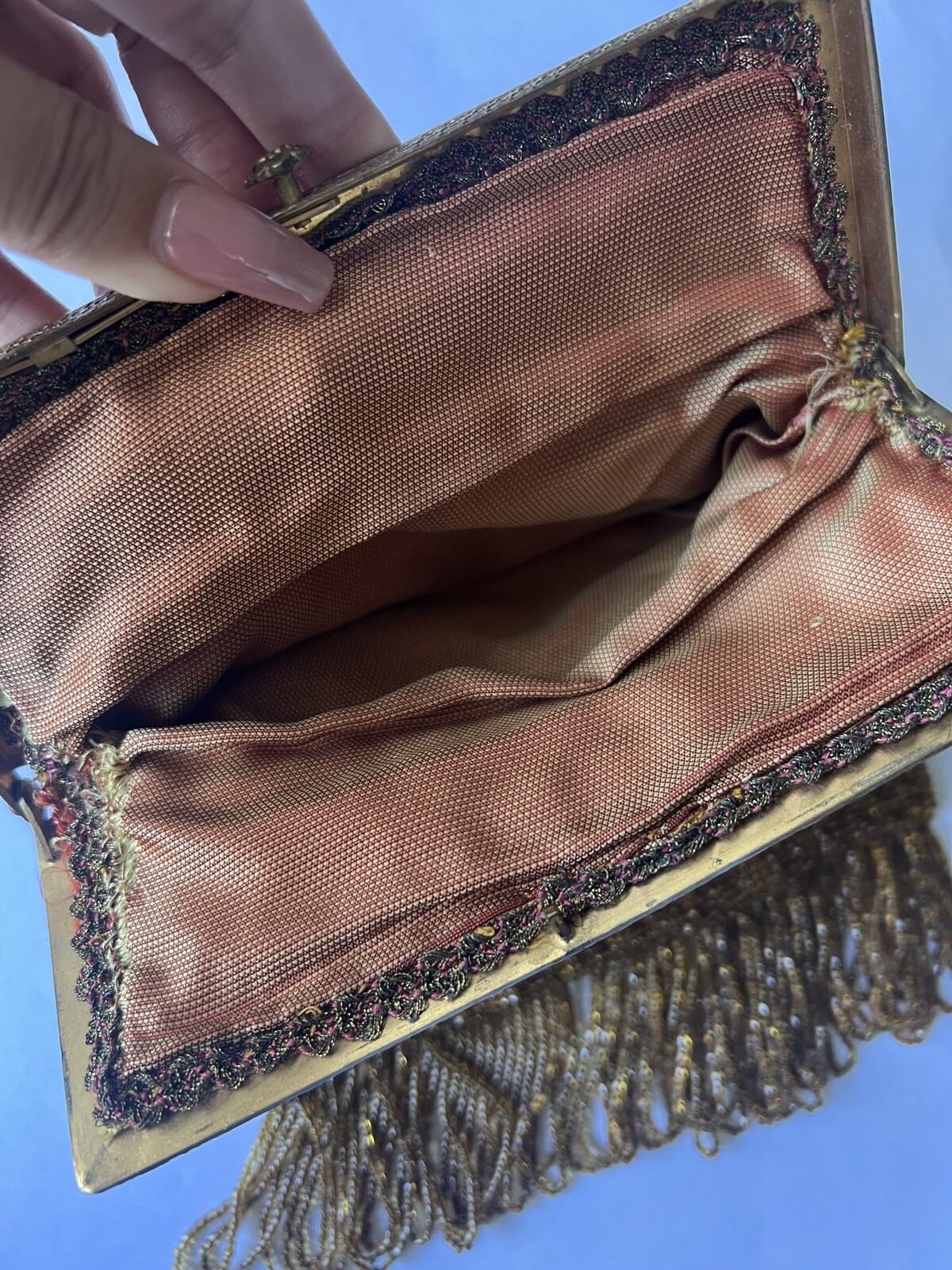 как выглядит Antique French Silver Gold Steel Beads Micro Steel Beads Large Tasseled Purse фото