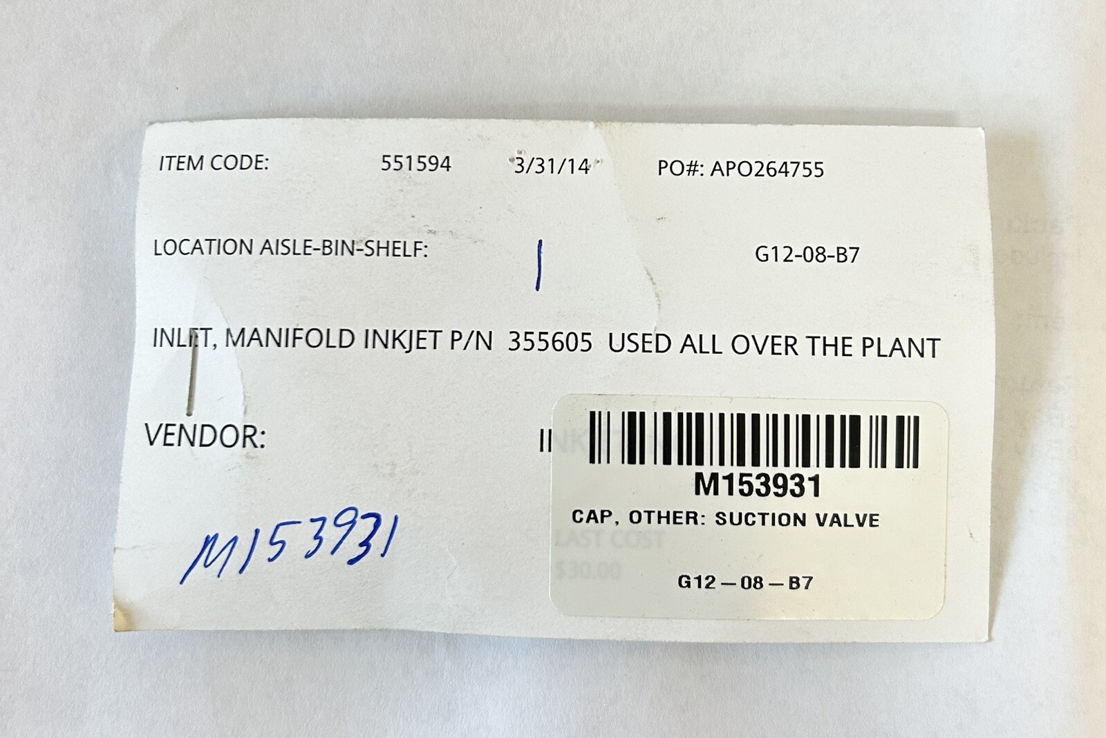 355605 Videojet Suction Valve Cap InkJet Inc. IJI355605 SP355605