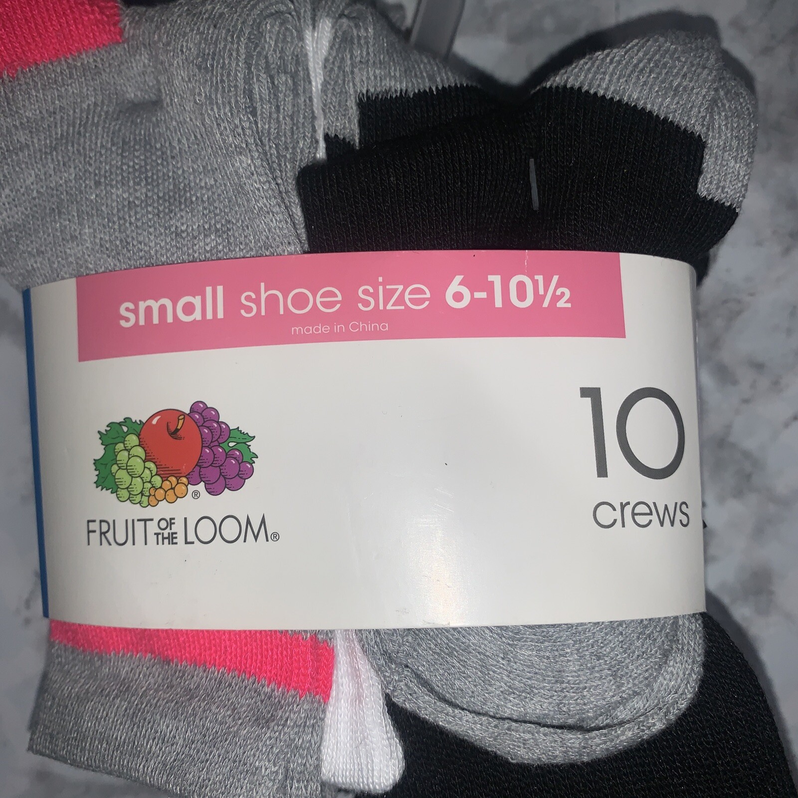 как выглядит Girls Fruit of the Loom 10 Pair Crew Socks Multi-Color Sz Small 6 - 10 1/2 фото