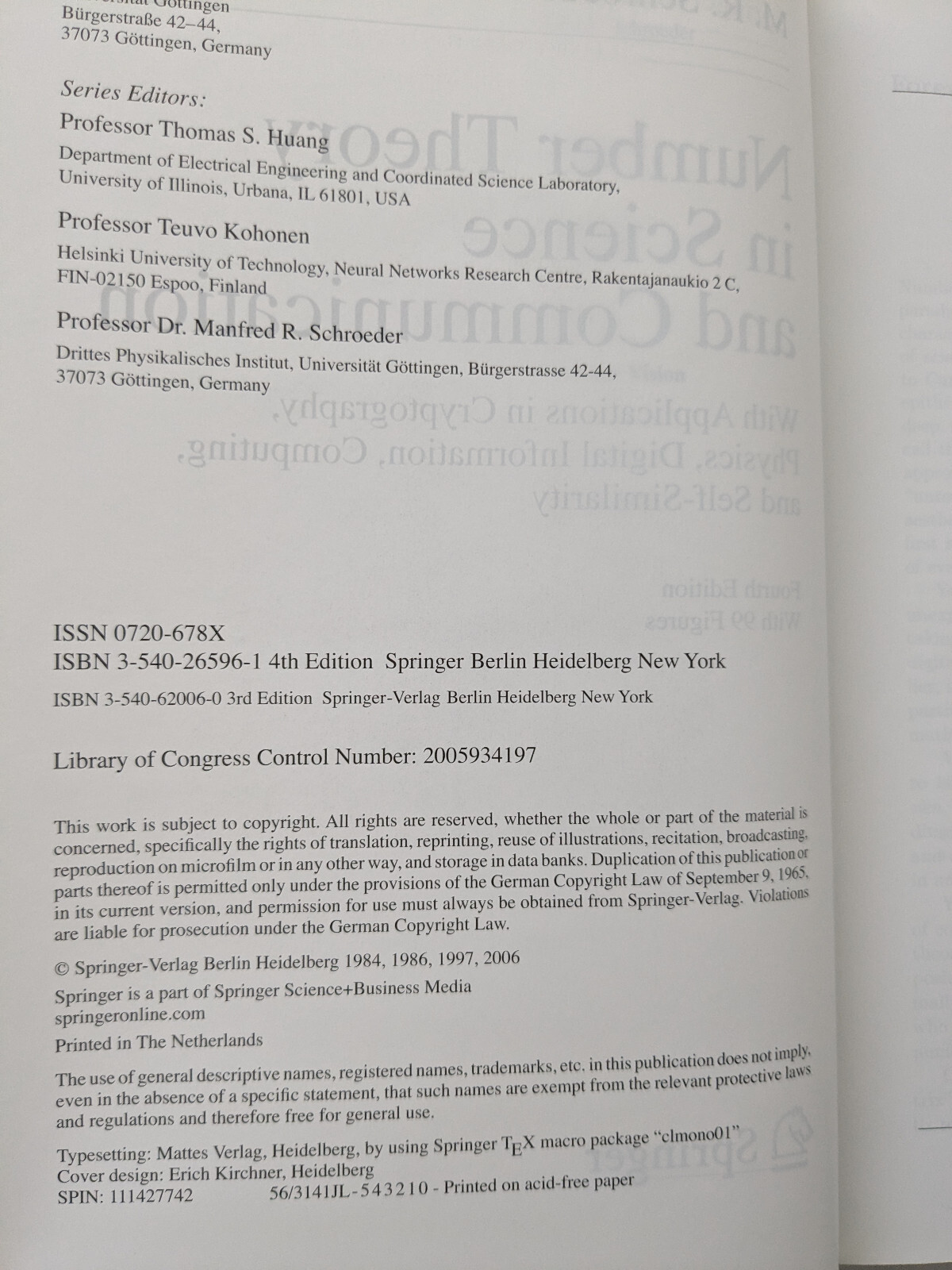 • Springer Series in Information Sciences Ser.: Number Theory in Science and...