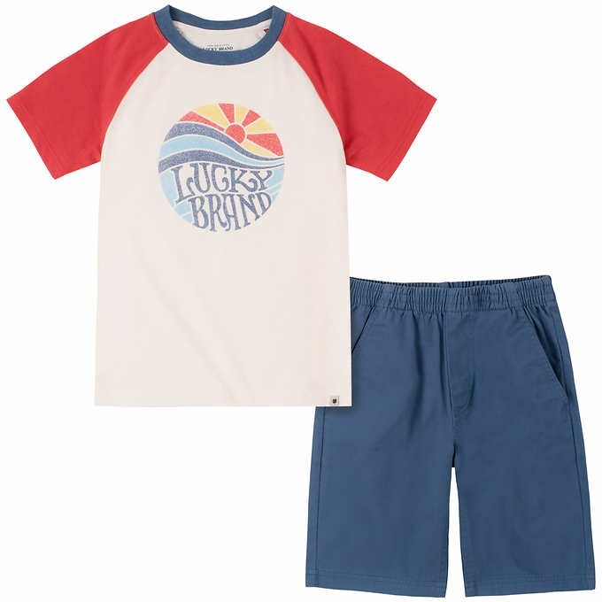 Lucky Brand Boys' Kids' 2-piece Set, White Blue Size 7 NWT