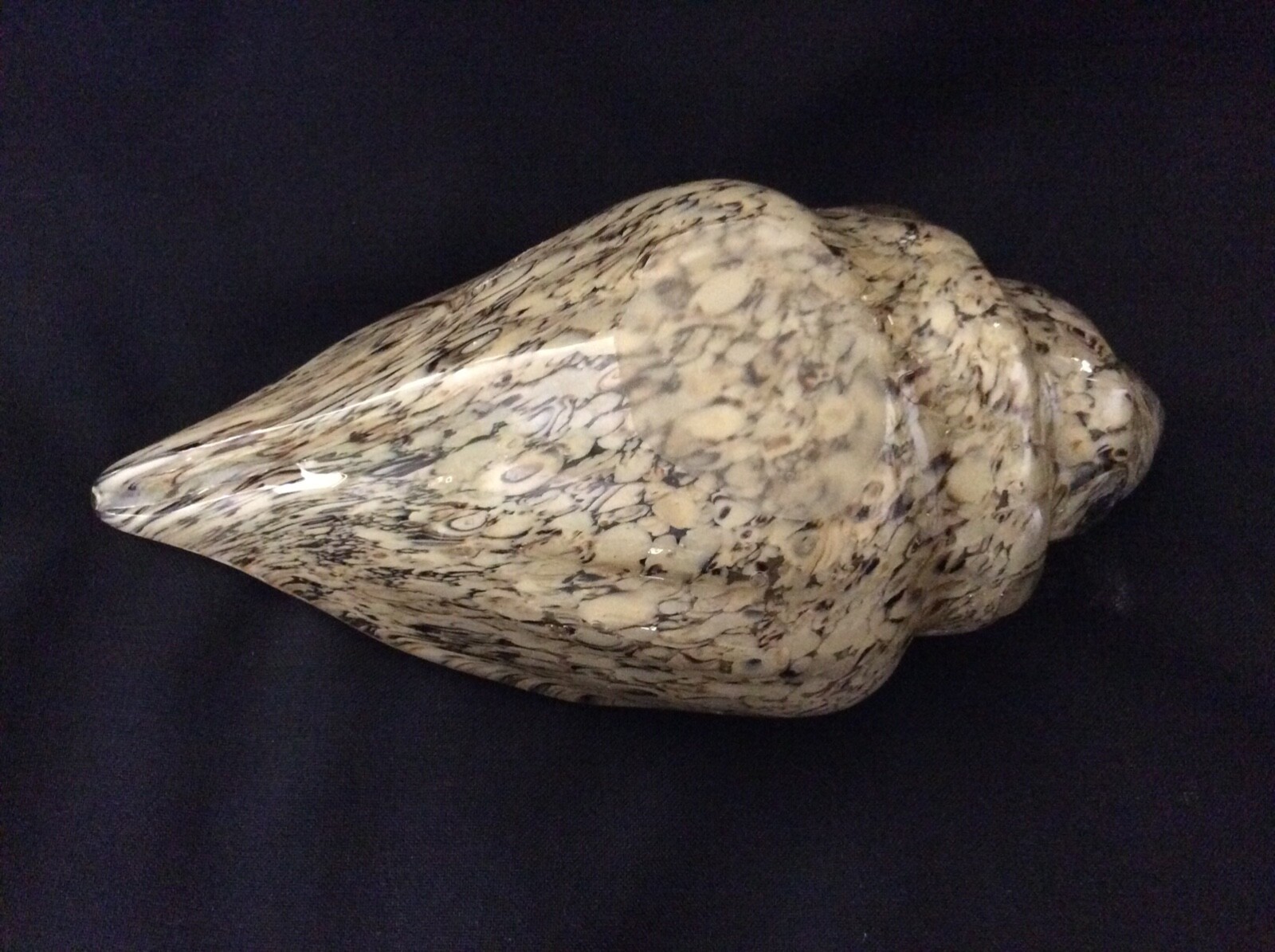 Glass Art Large Seashell Conch, Heavy, Beige Brown Swirls-Speckle-Spatter