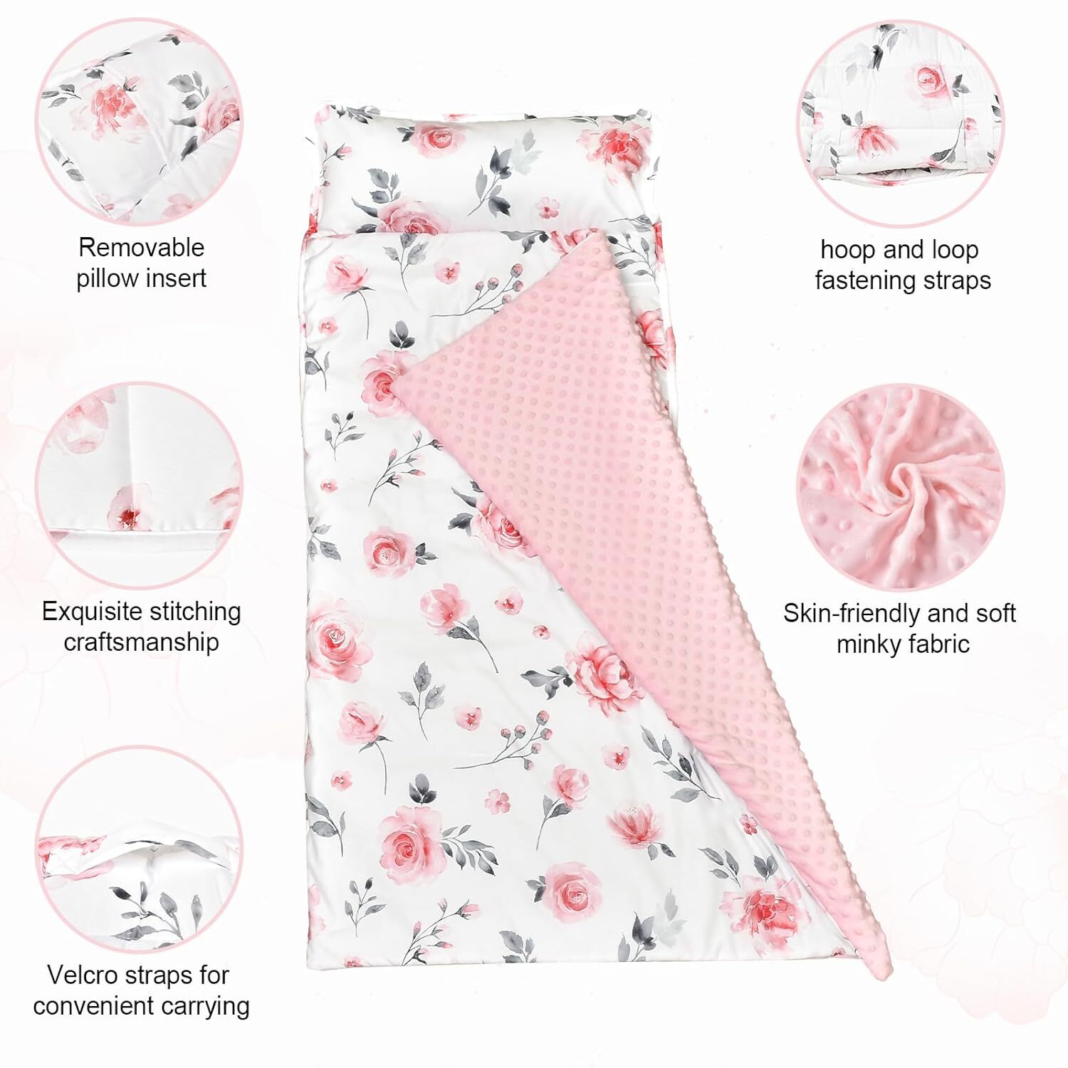david's kids Toddler Nap Mat with Warm Minky Dots Lining, 50''x20'', Floral