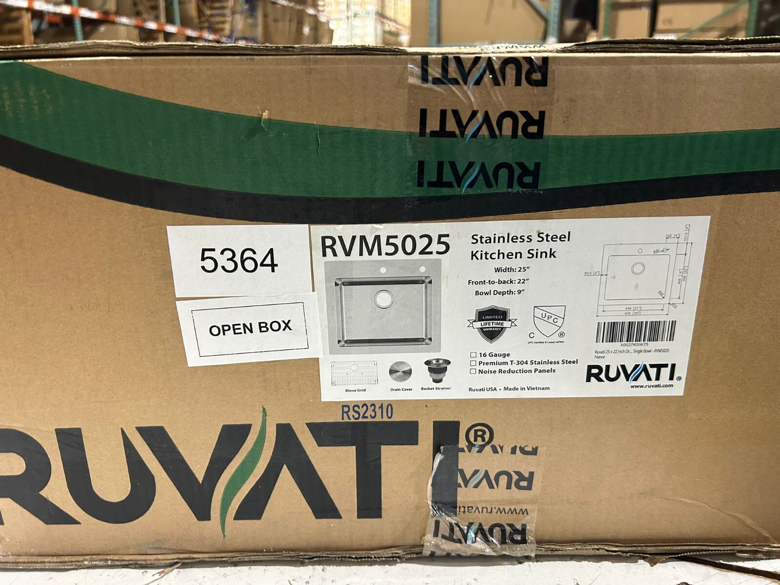 Ruvati 25x22 Drop-in Topmount 16Gauge Single Bowl Kitchen Sink- RVM5025 5364