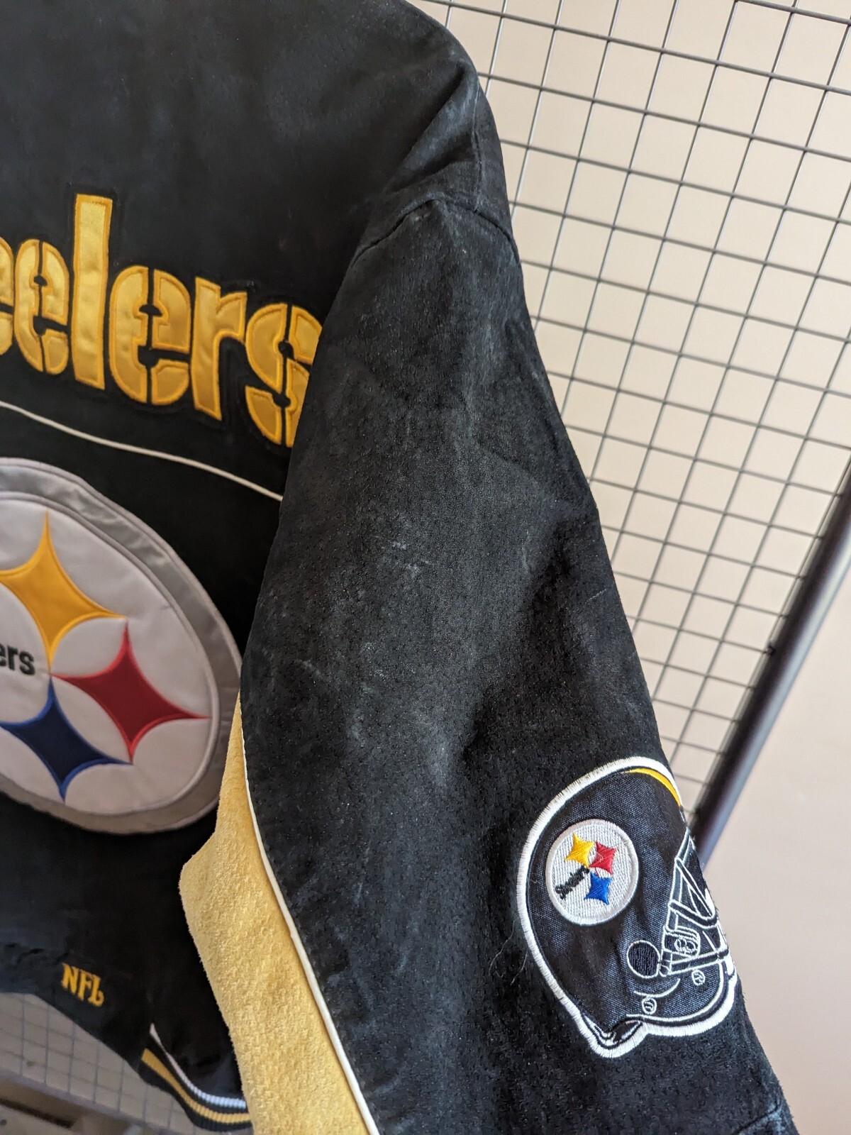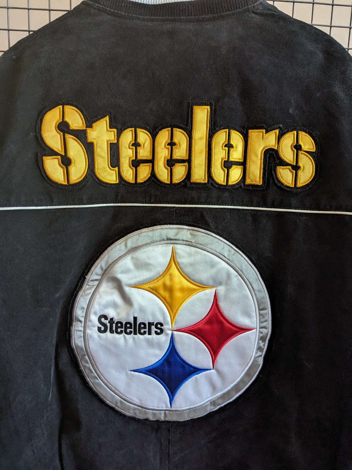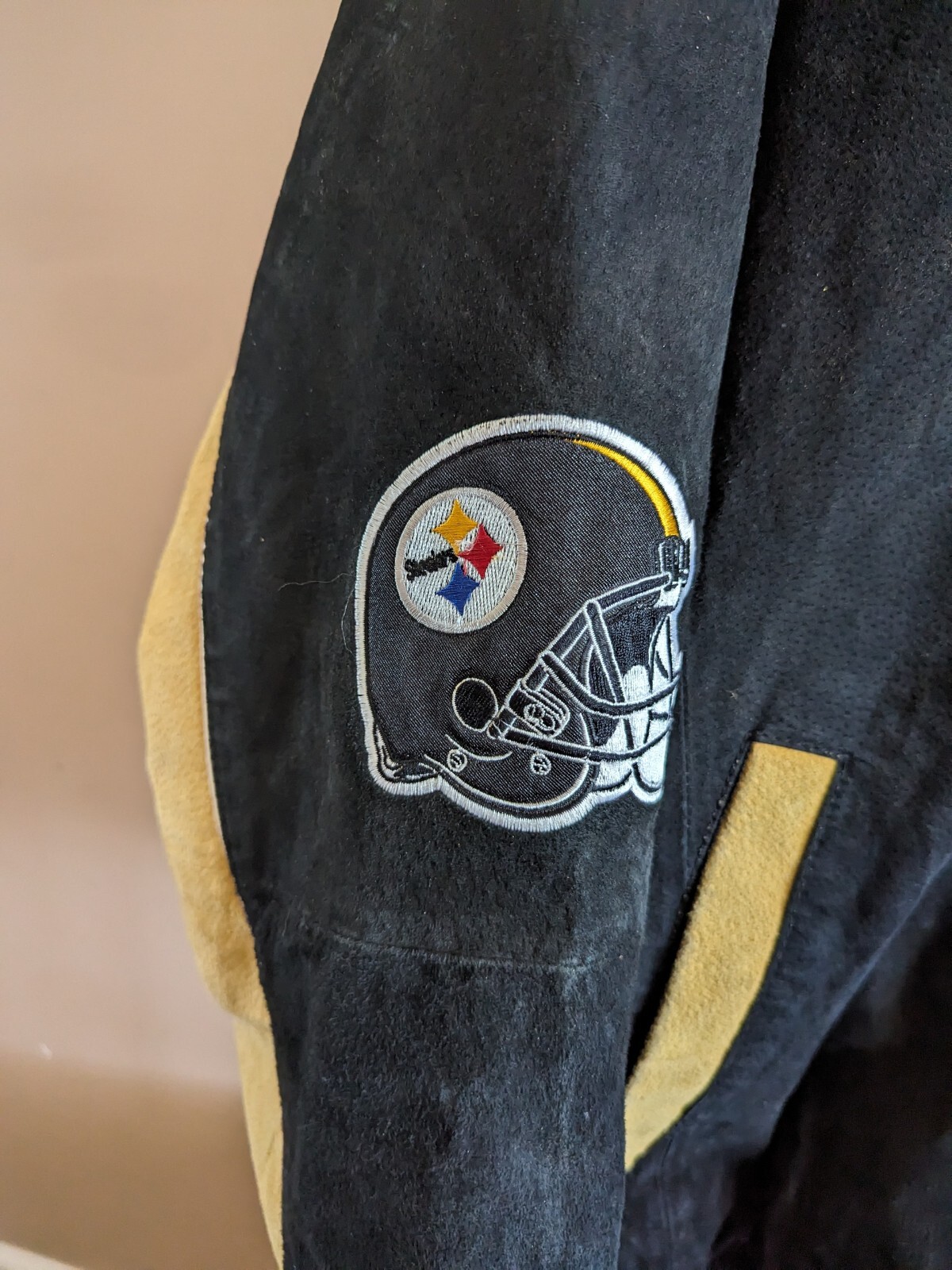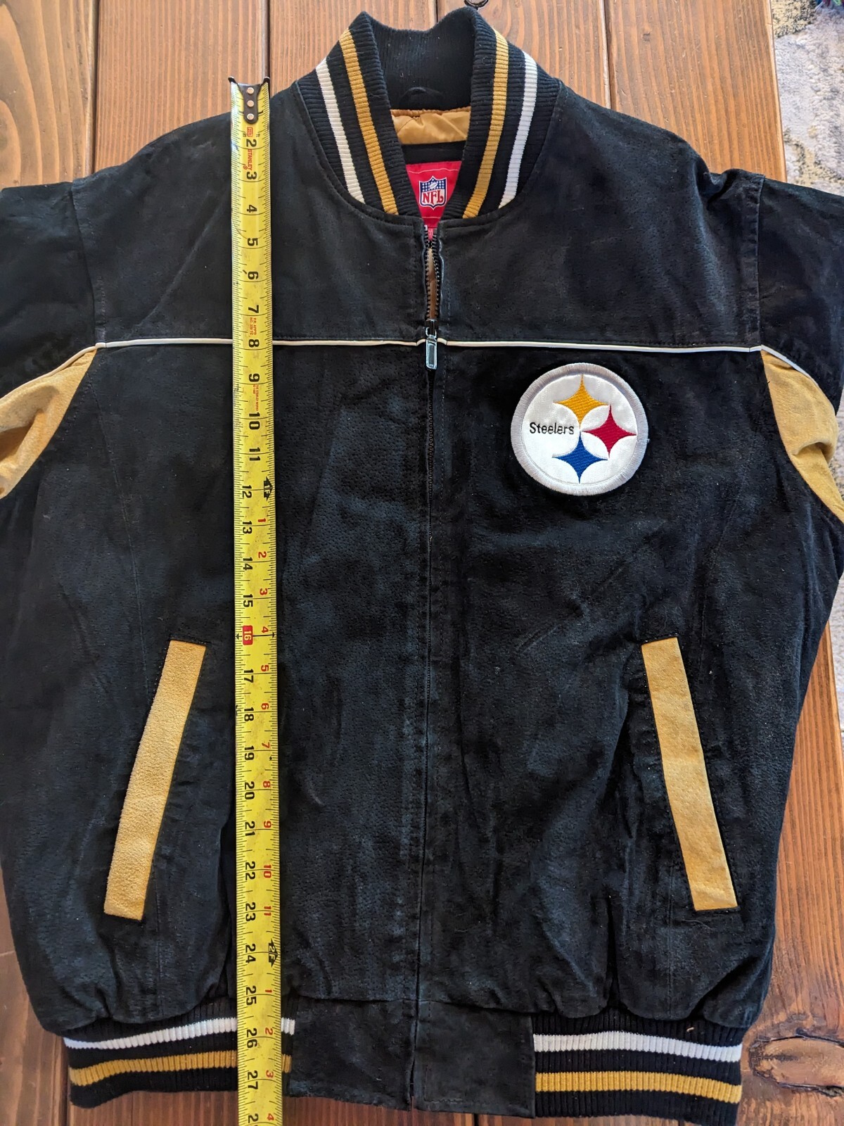 как выглядит NFL Pittsburgh Steelers AFC Patch Logo Suede Leather Varsity Jacket Sz Large фото