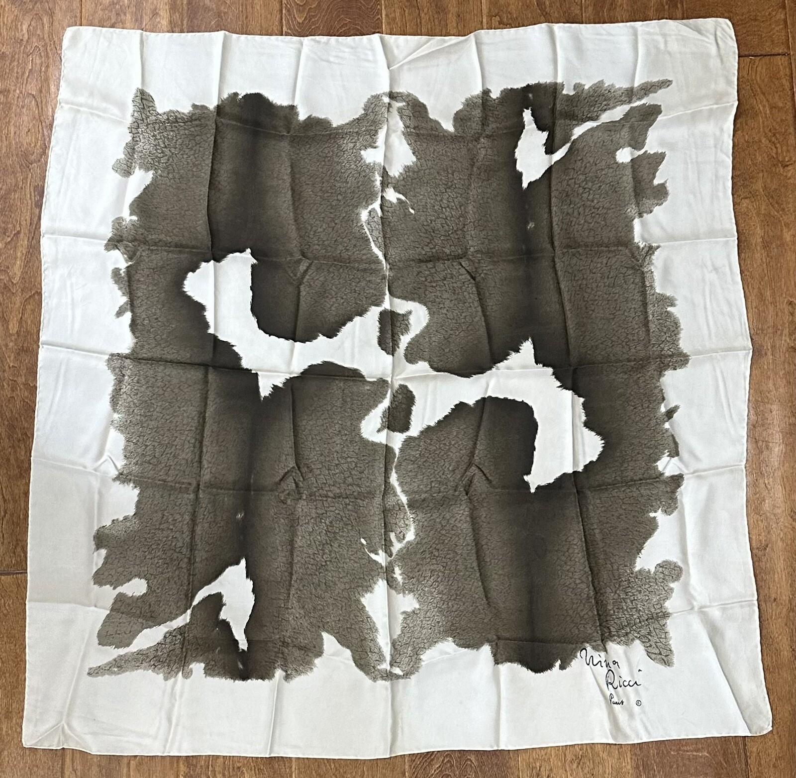 как выглядит Vintage Nina Ricci Paris Scarf Beige With Shades Of Brown 35 X 35 фото