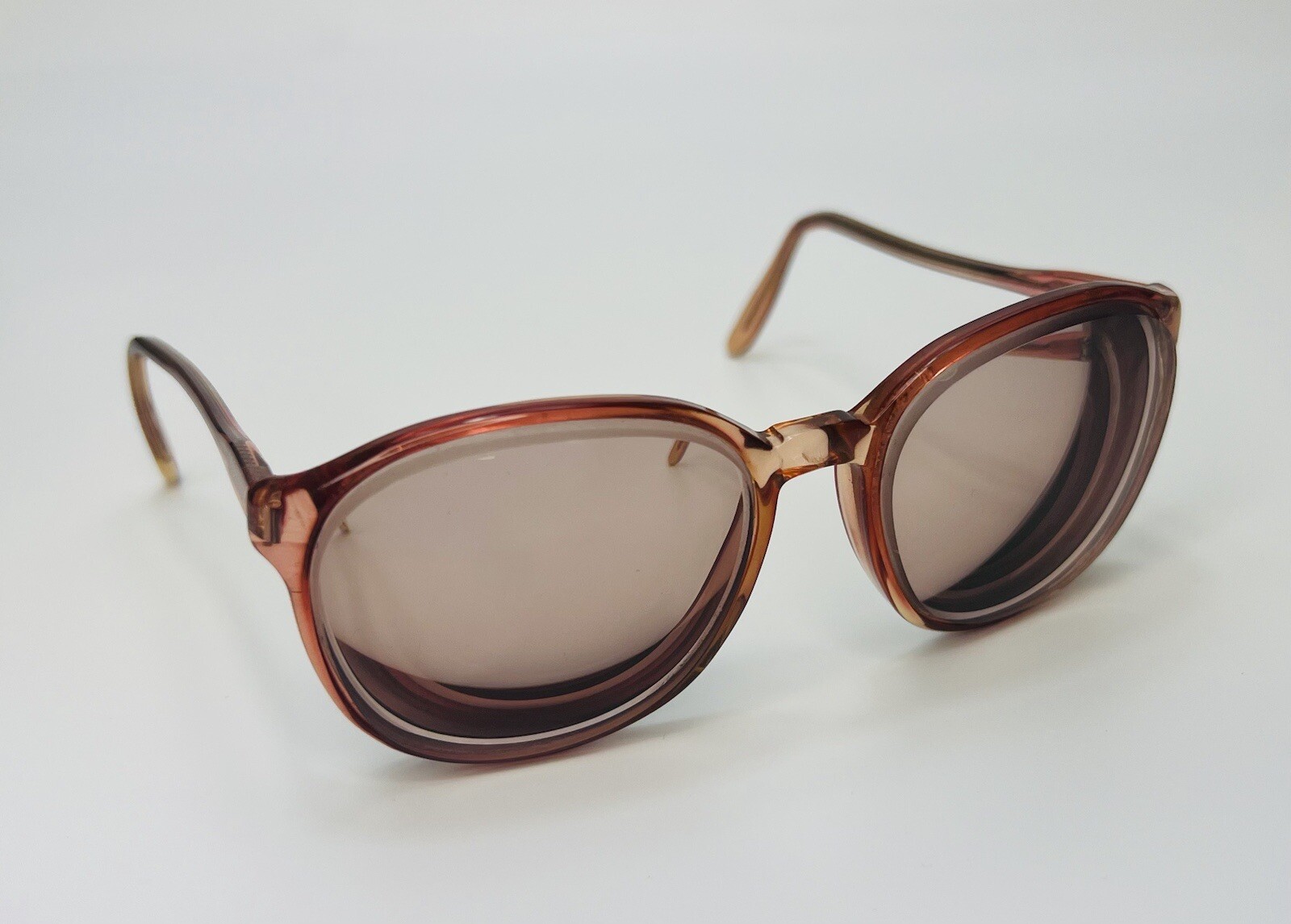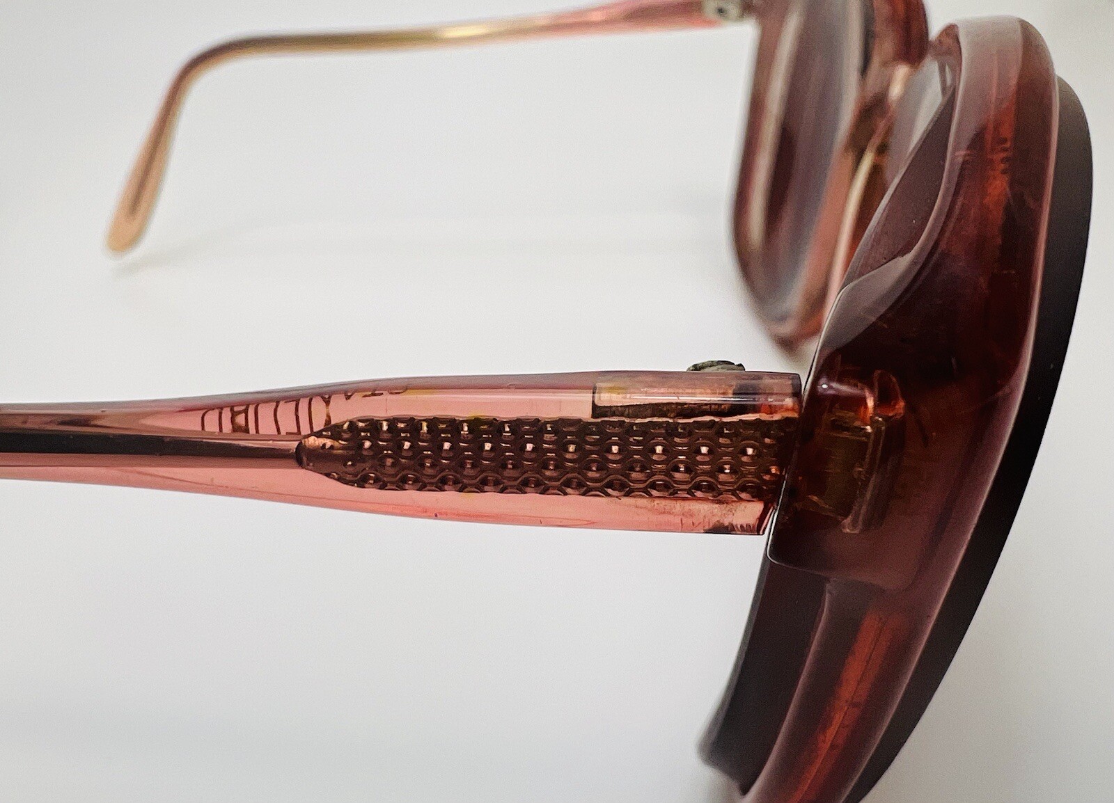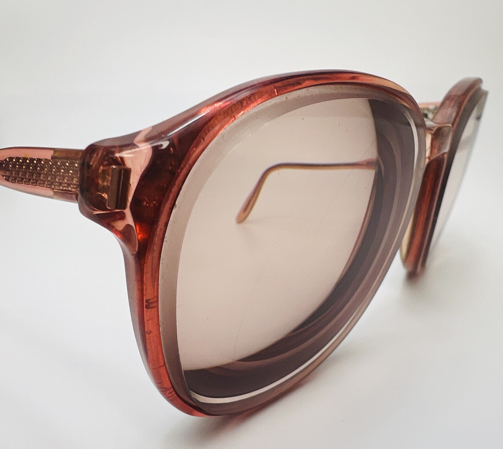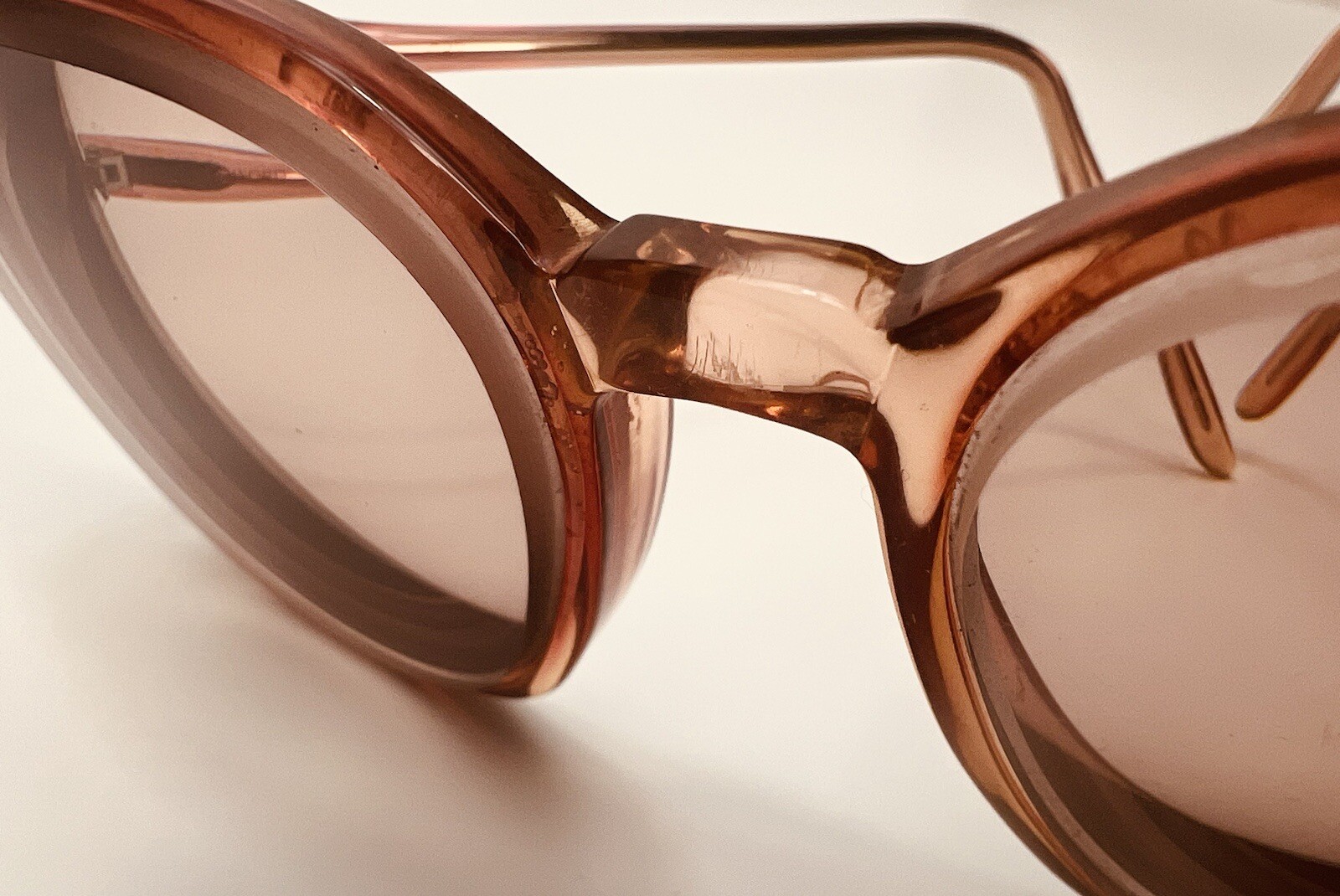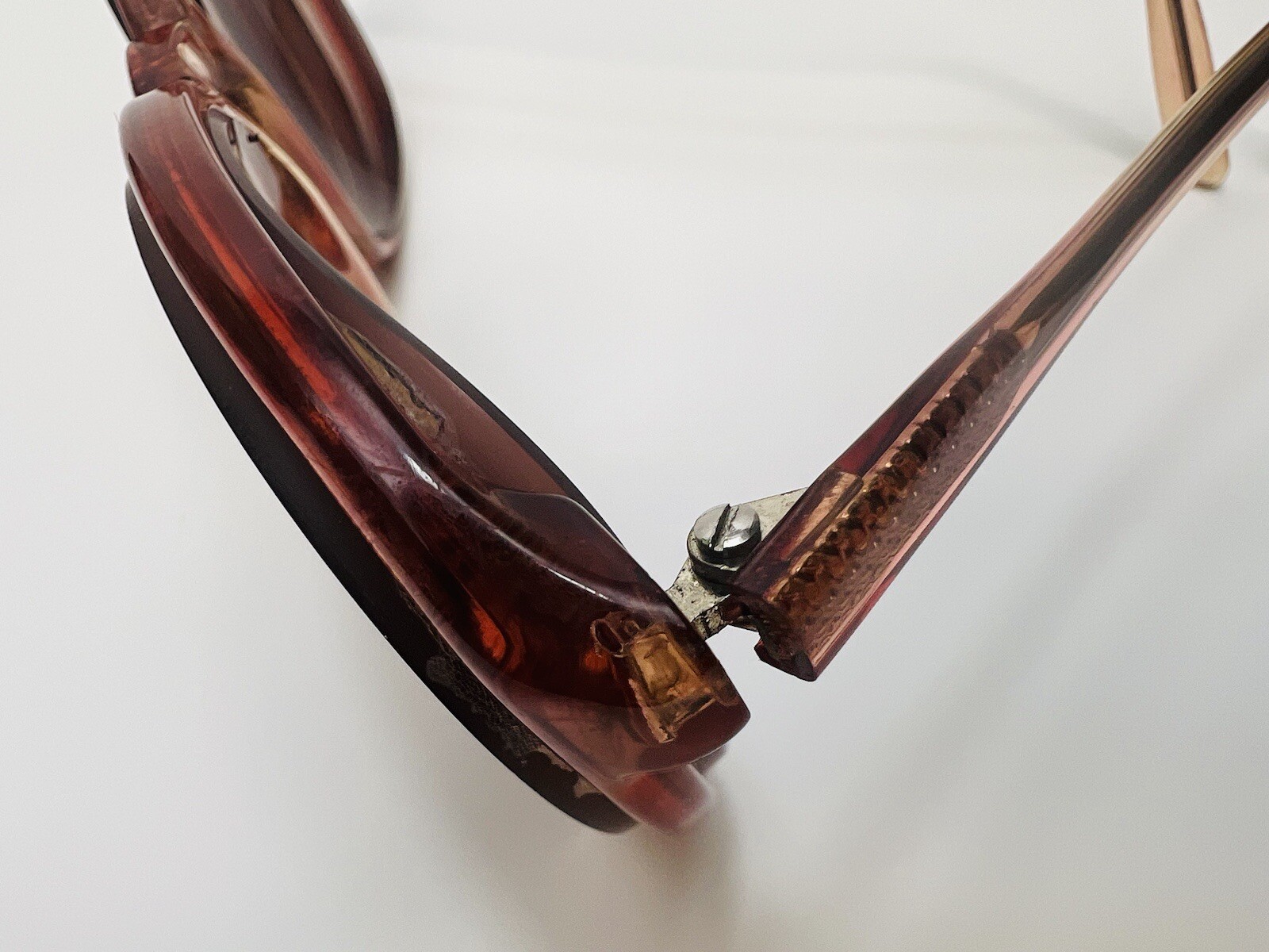 как выглядит Vintage Designer Sanford Hutton Red Salmon Round Horned Sunglasses Frames ONLY фото