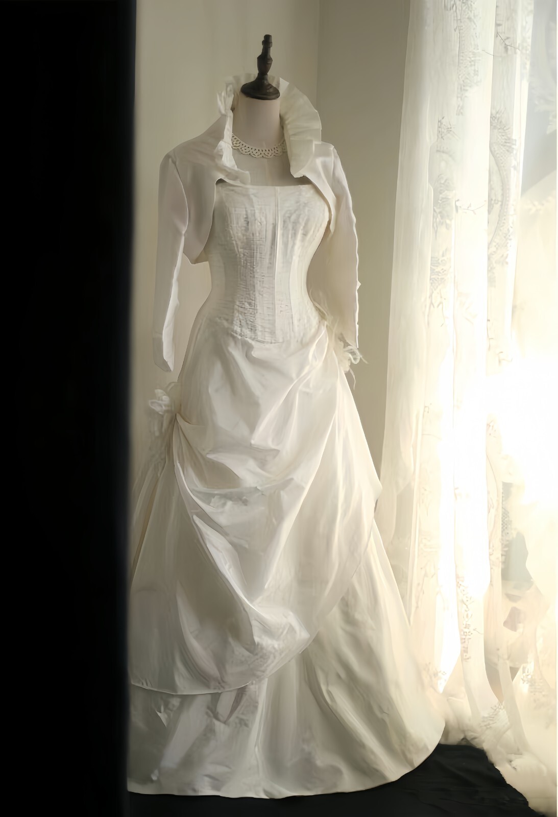 Victorian Wedding Dresses Satin Sweetheart with Jacket Vintage 1950s Bridal Gown