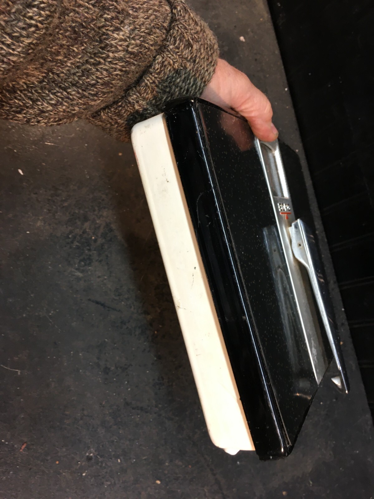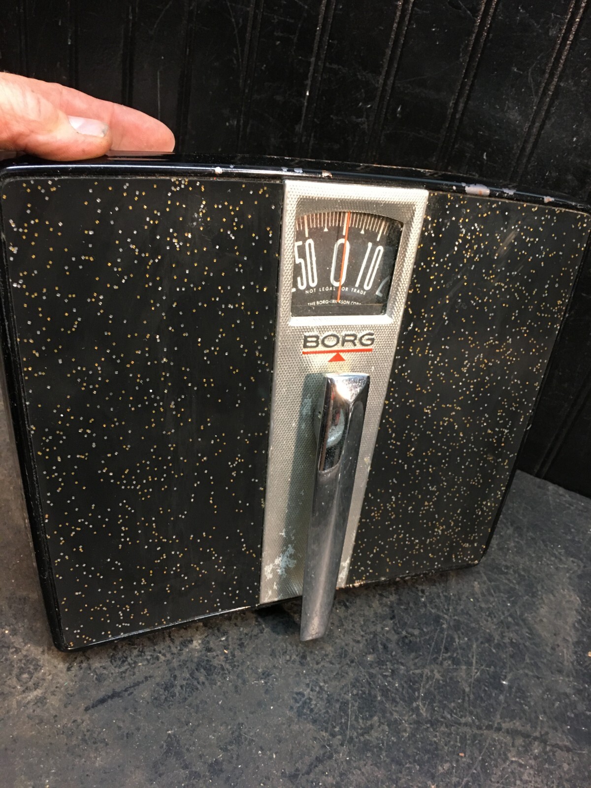 • Vintage Mid Century Borg Bathroom Scale Black And Gold Flakes USA