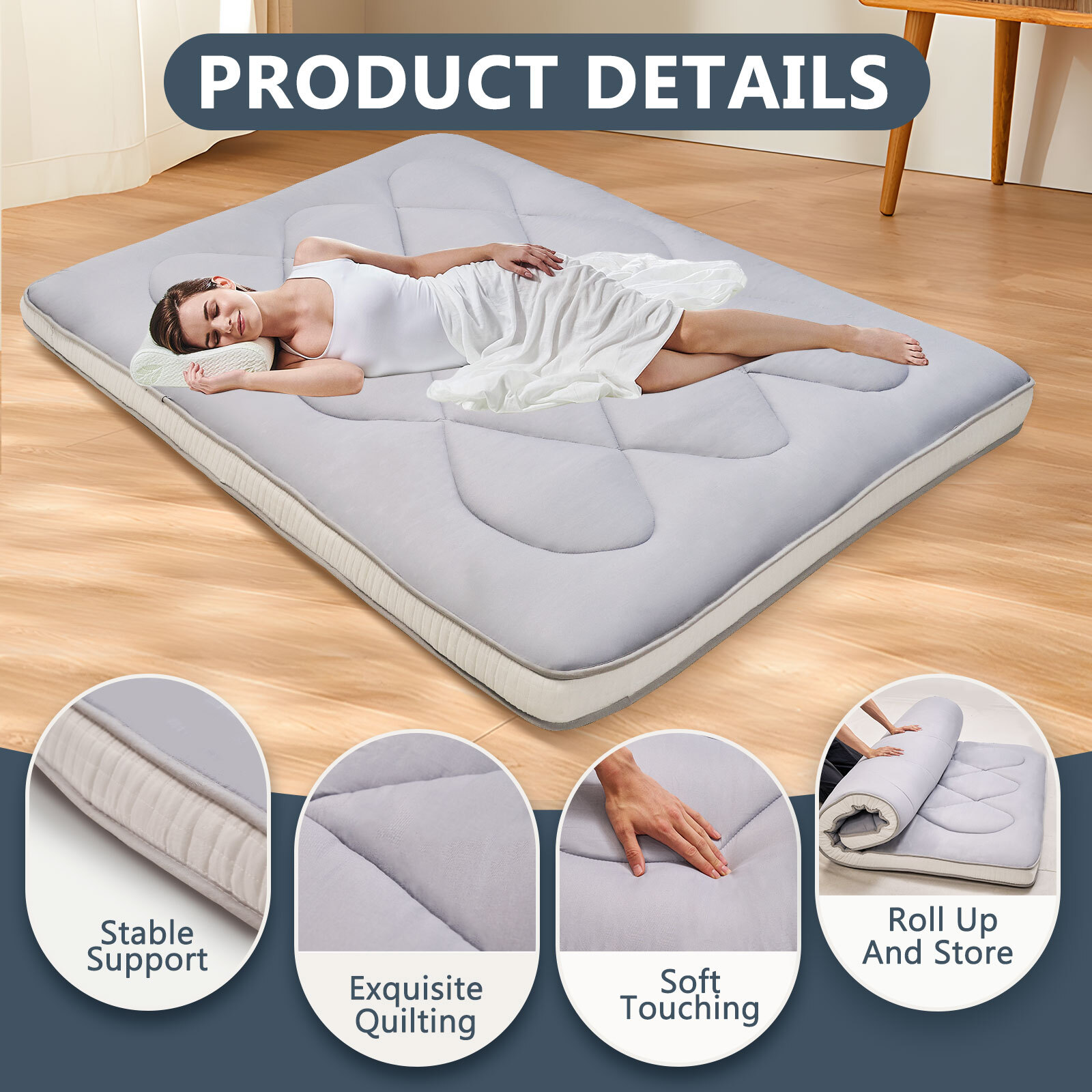 Japanese Floor Mattress Futon Mattress Twin Full Queen Tatami Mat 3.5 inch Thick