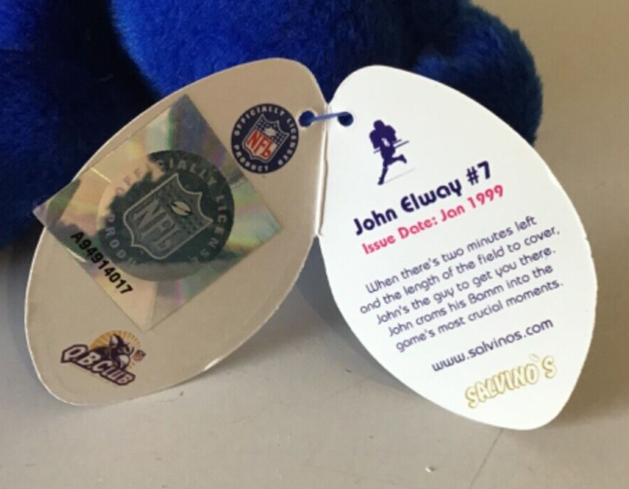 • John Elway 1999 Salvino's Bammers 9 inch plush beanbag beanie bear