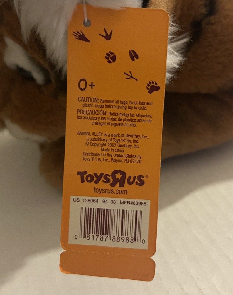 как выглядит Animal Alley Brown Tiger Plush 12" Stuffed Animal Black Stripes Toys R Us 2007 фото