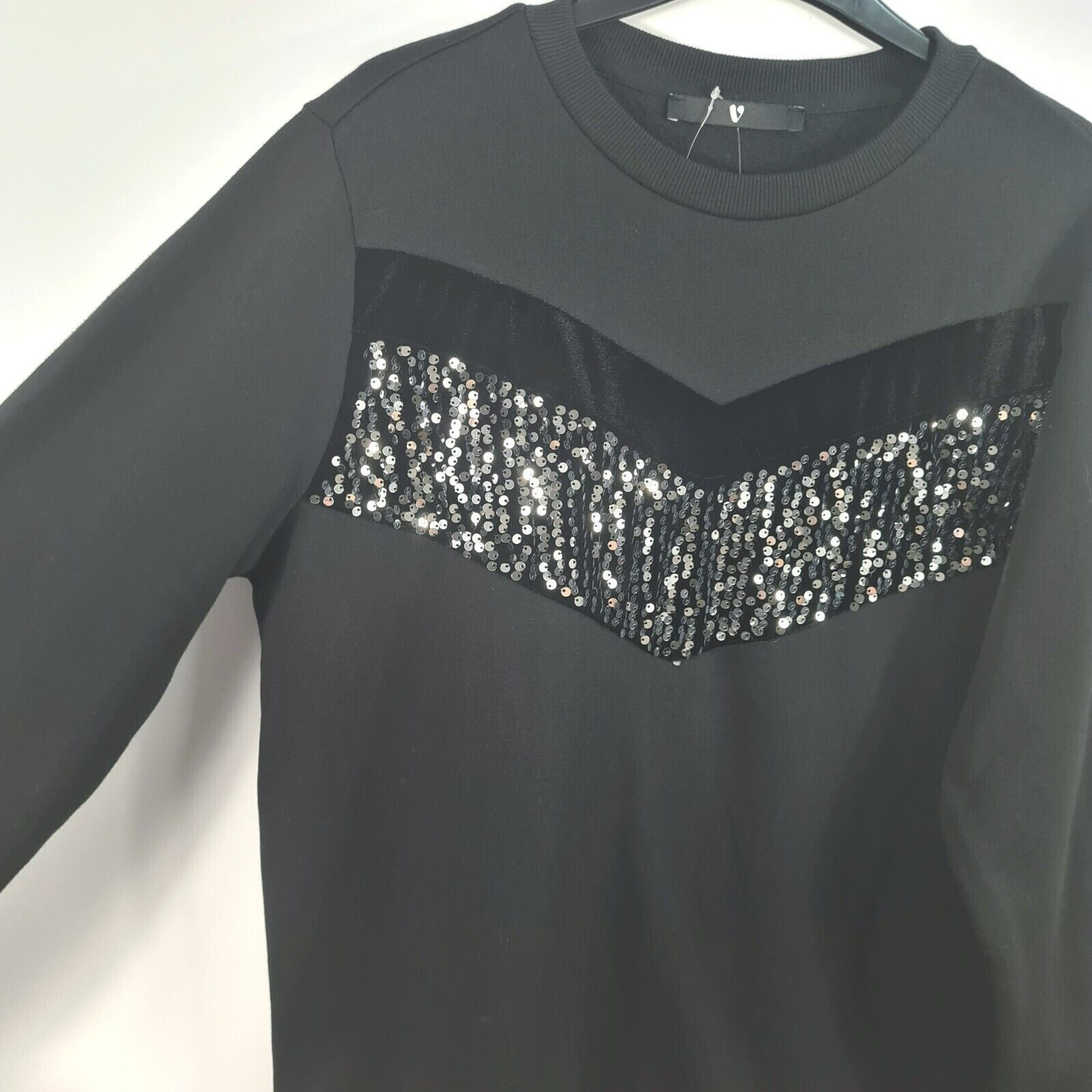 как выглядит V by Very- NEW - Sequin and Velvet Chevron Sweat - Black - UK 10 фото