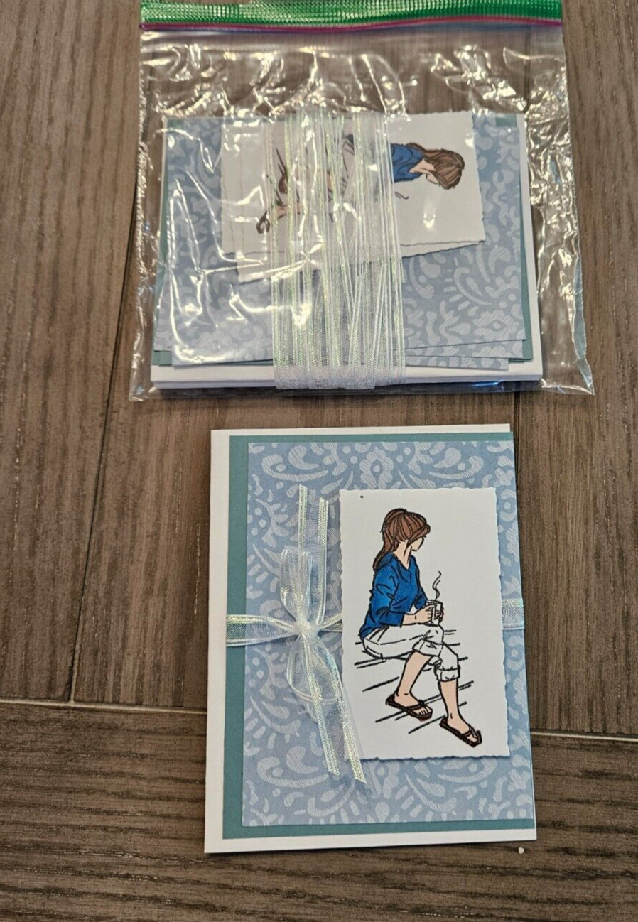 STAMPIN UP CARD KIT -GIRL DRINKING COFFEE MAKES 4 24.662
