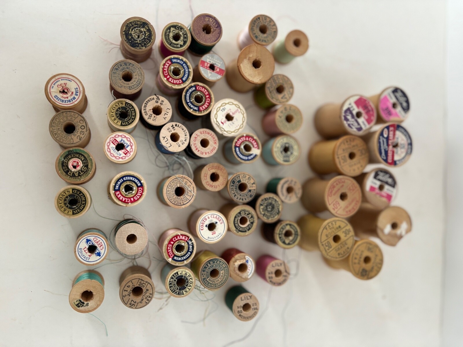 • Mixed Lot 50 Vintage Wooden Thread Spools Coats Clark's Talon Belding Dexter
