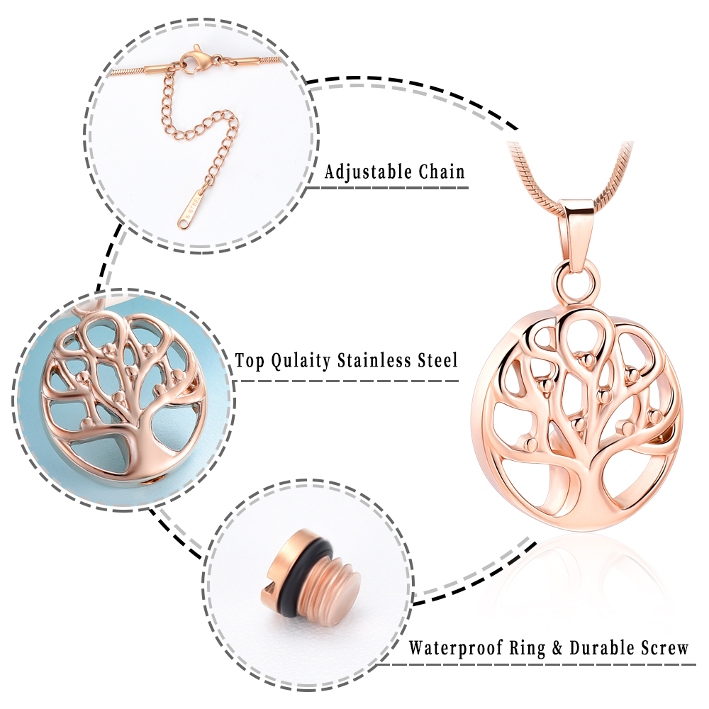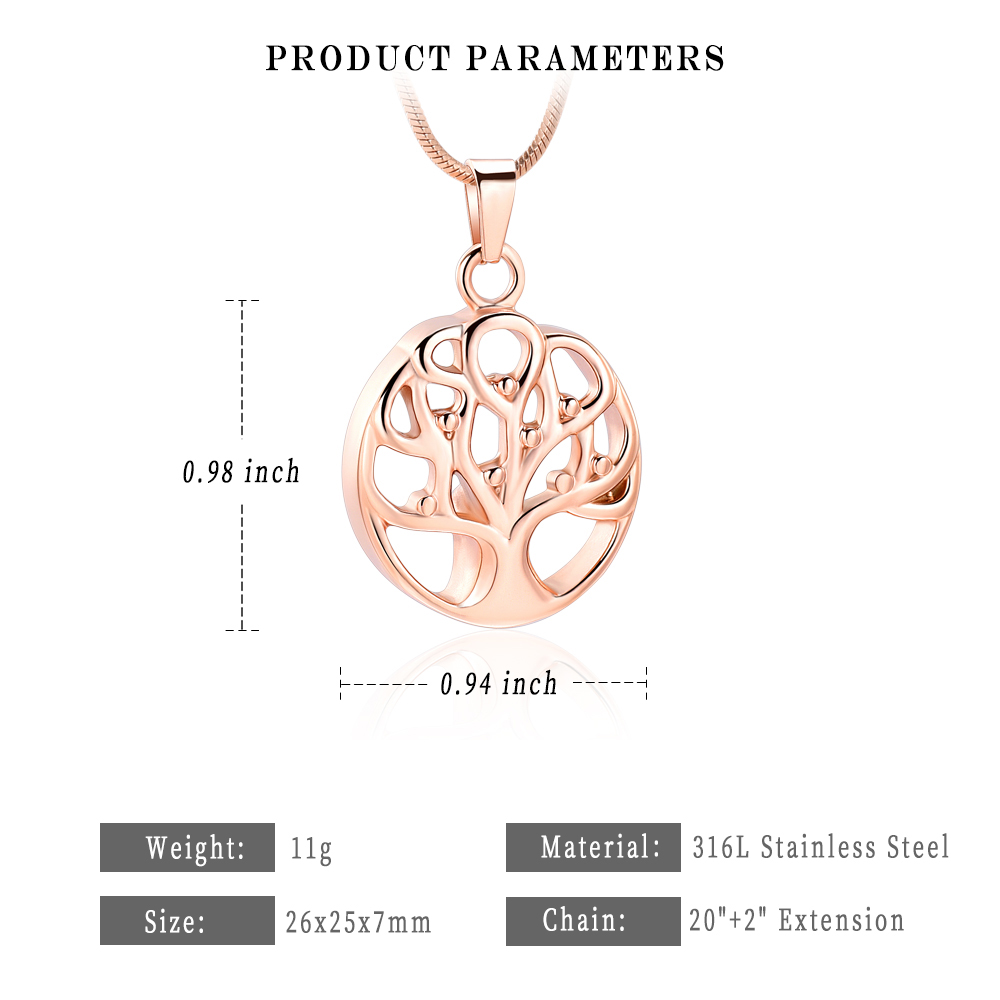 Stainless Steel Tree of Life Urn Pendant Memory Necklace for Cremation Ashes