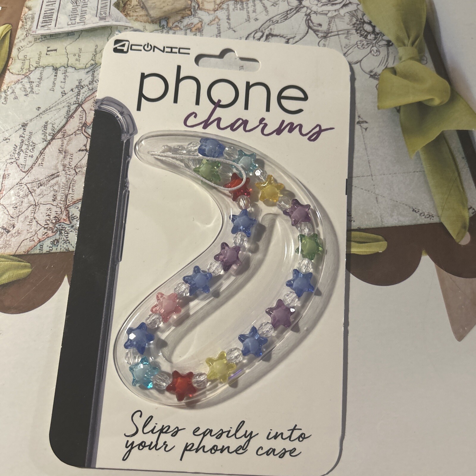 как выглядит Cell Phone Charm Hanging Lanyard/Strap Colorful W/Pink Stars Slip Bags Rare Cute фото