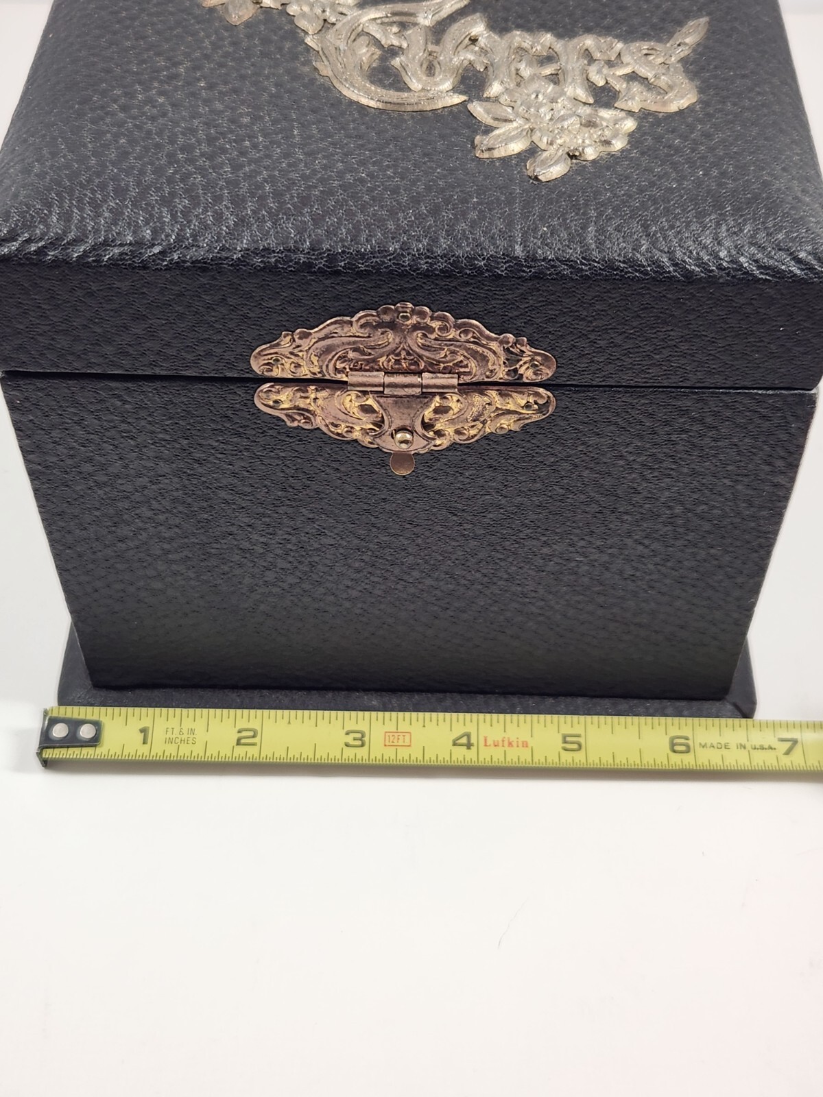 как выглядит Antique Victorian wood collars and cuffs box with applied metal lettering READ фото