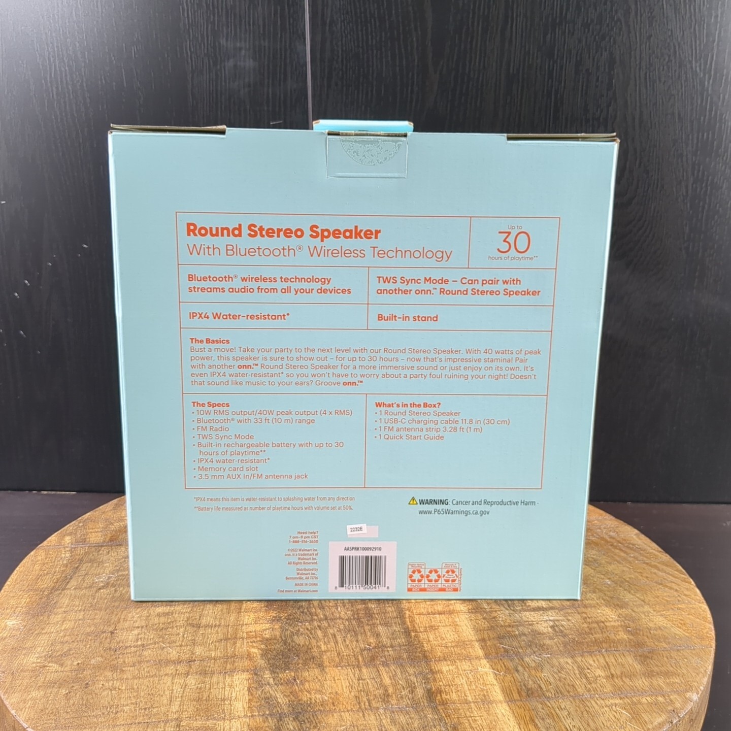 NEW Groove Onn Round Stereo Bluetooth Speaker Ipx4 Water Resistant