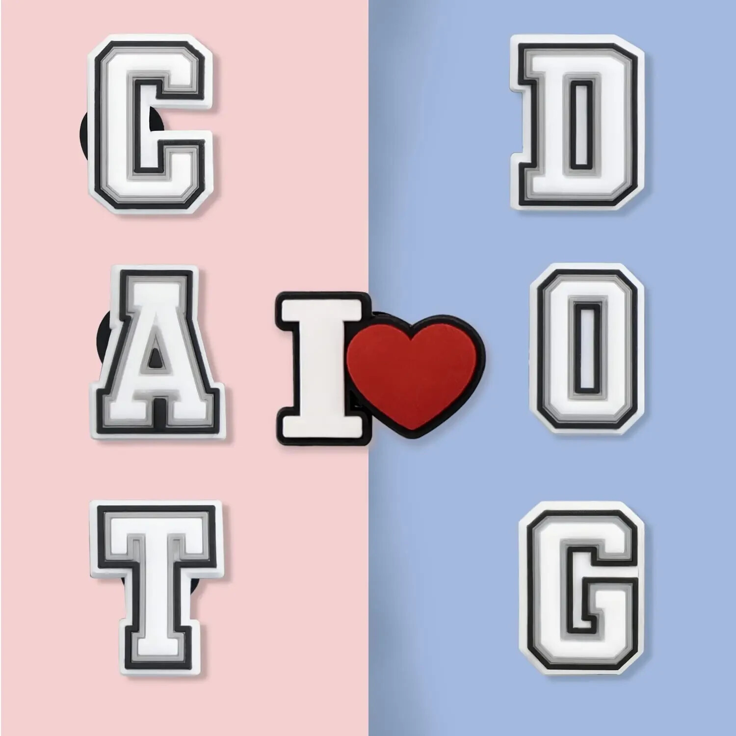 ALPHABET, LETTERS, NUMBERS, I I LOVE HEART Shoe Charms fits CROCS you pick
