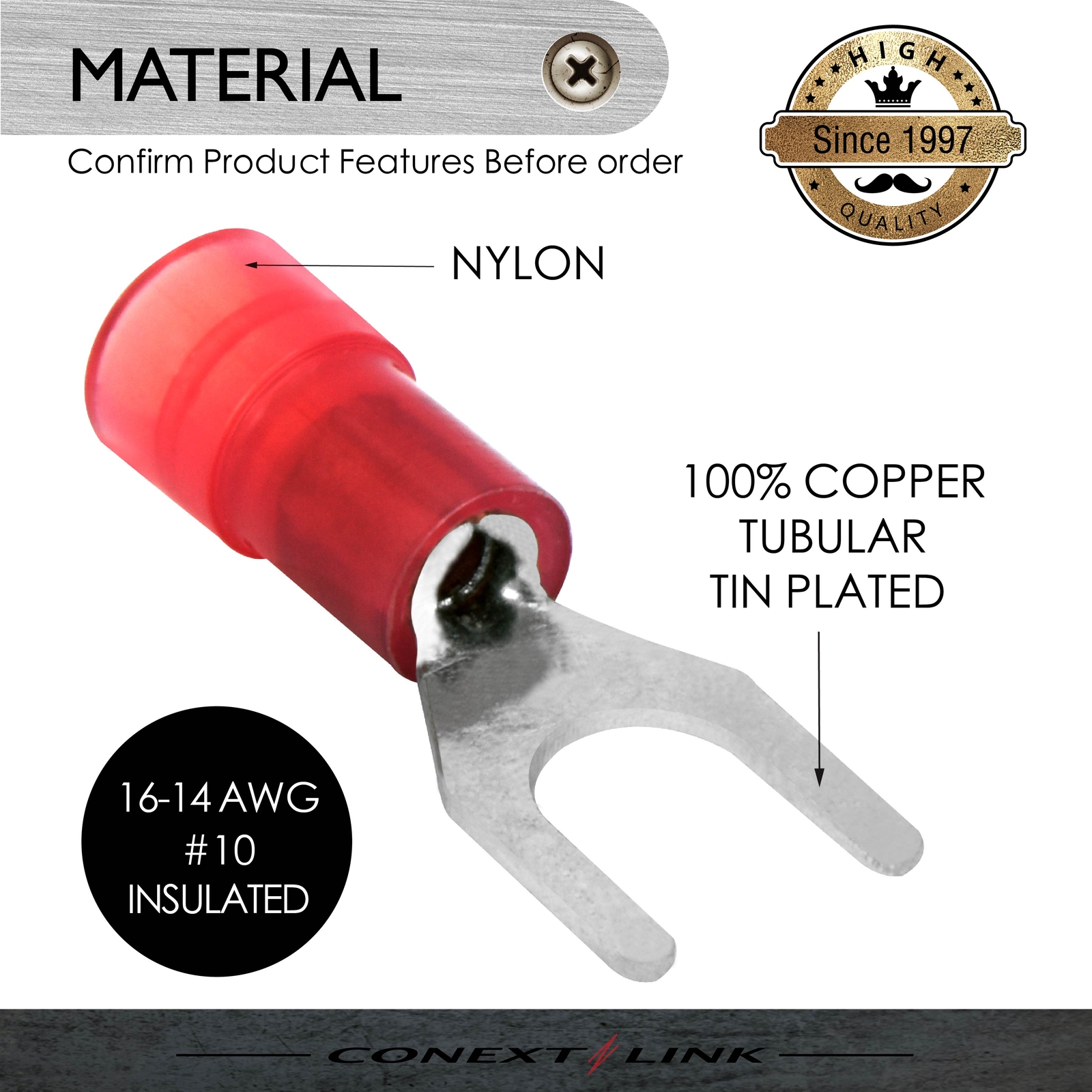 100 Spade Fork Terminal Connector Nylon Red 22-18 GA AWG Gauge 10 Stud Speaker
