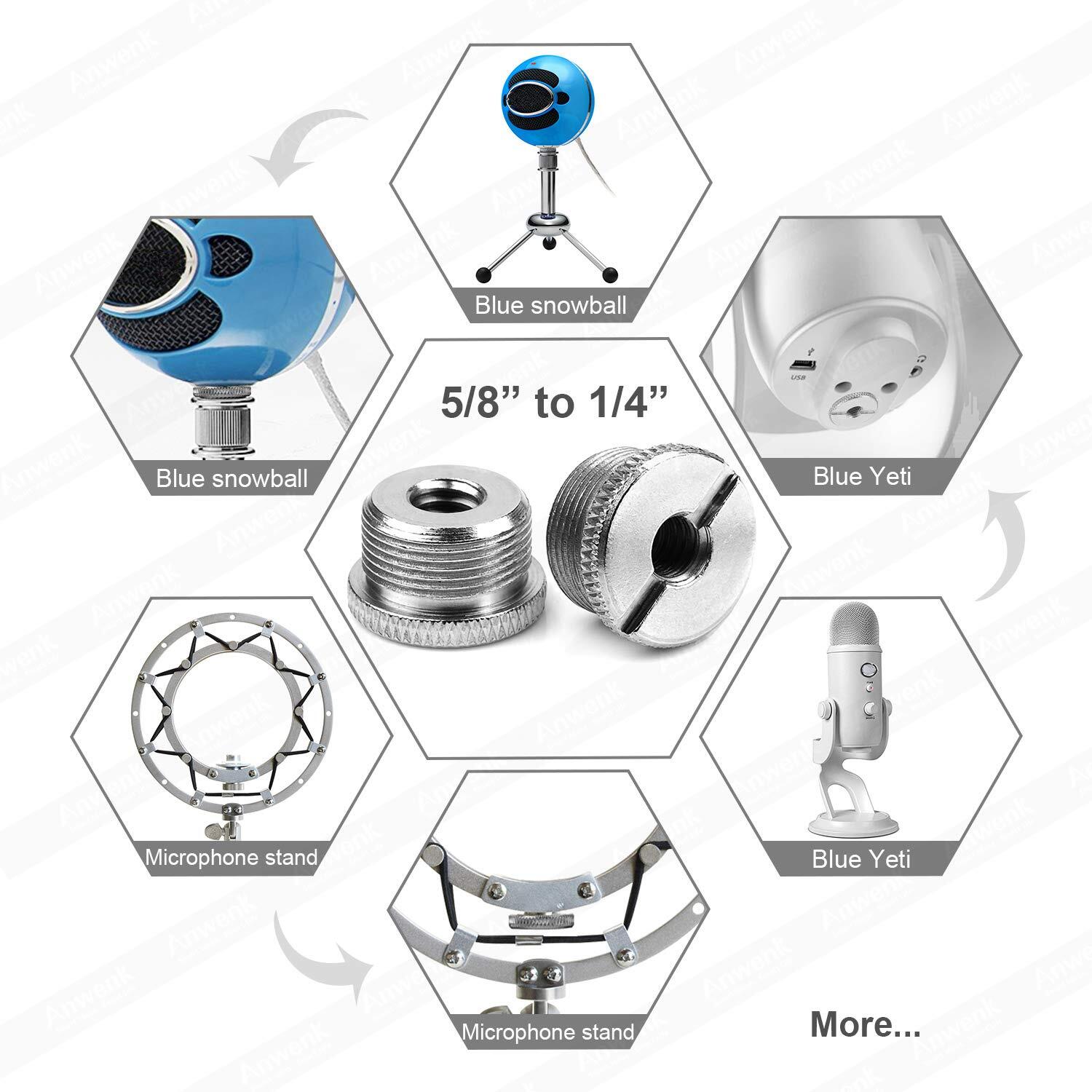 2 Pack 5/8 Male to 1/4 Female Mic Screw Adapter for Microphone Stand Tripod