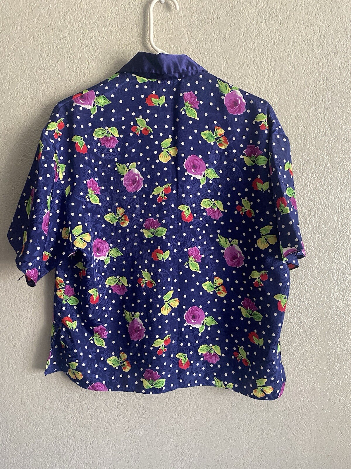 Vintage Victoria's Secret Women Top Sleepwear S Floral Green Purple Gold Label