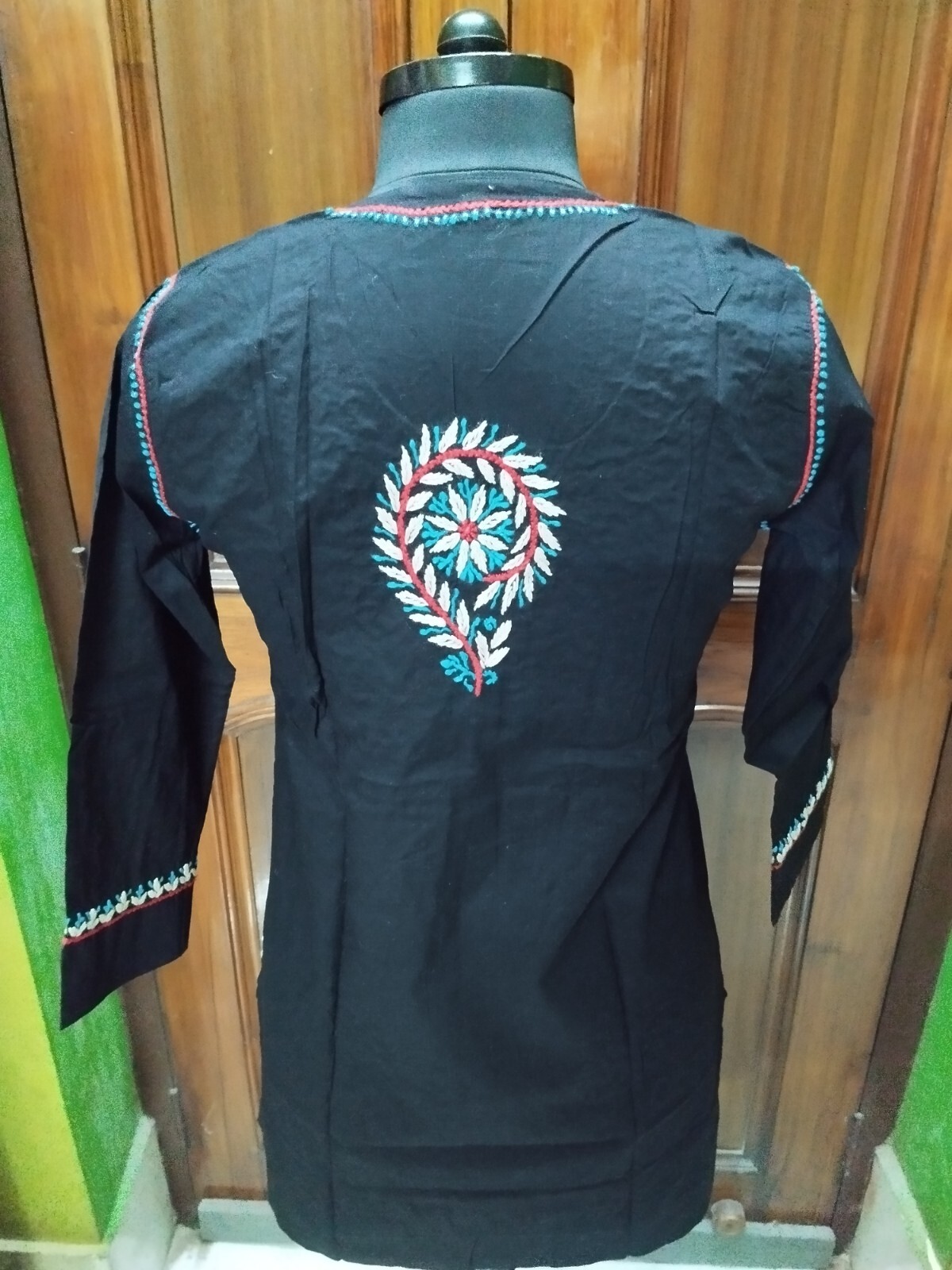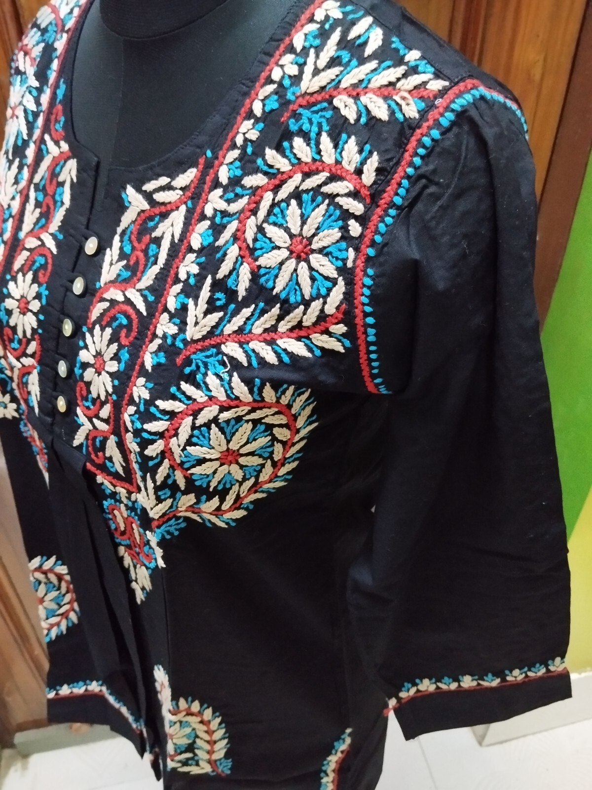 как выглядит ARTICTIC XS S M L HANDMADE CHIKAN EMBROIDERY ETHNIC 100 COTTON TOP KURTA KURTI фото