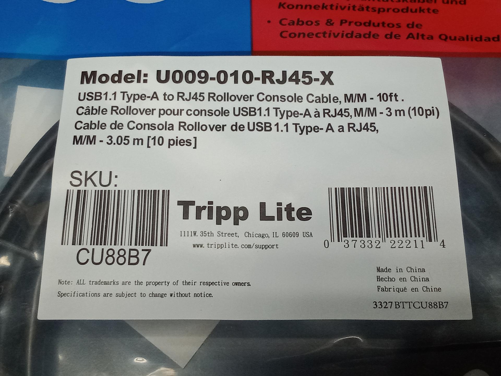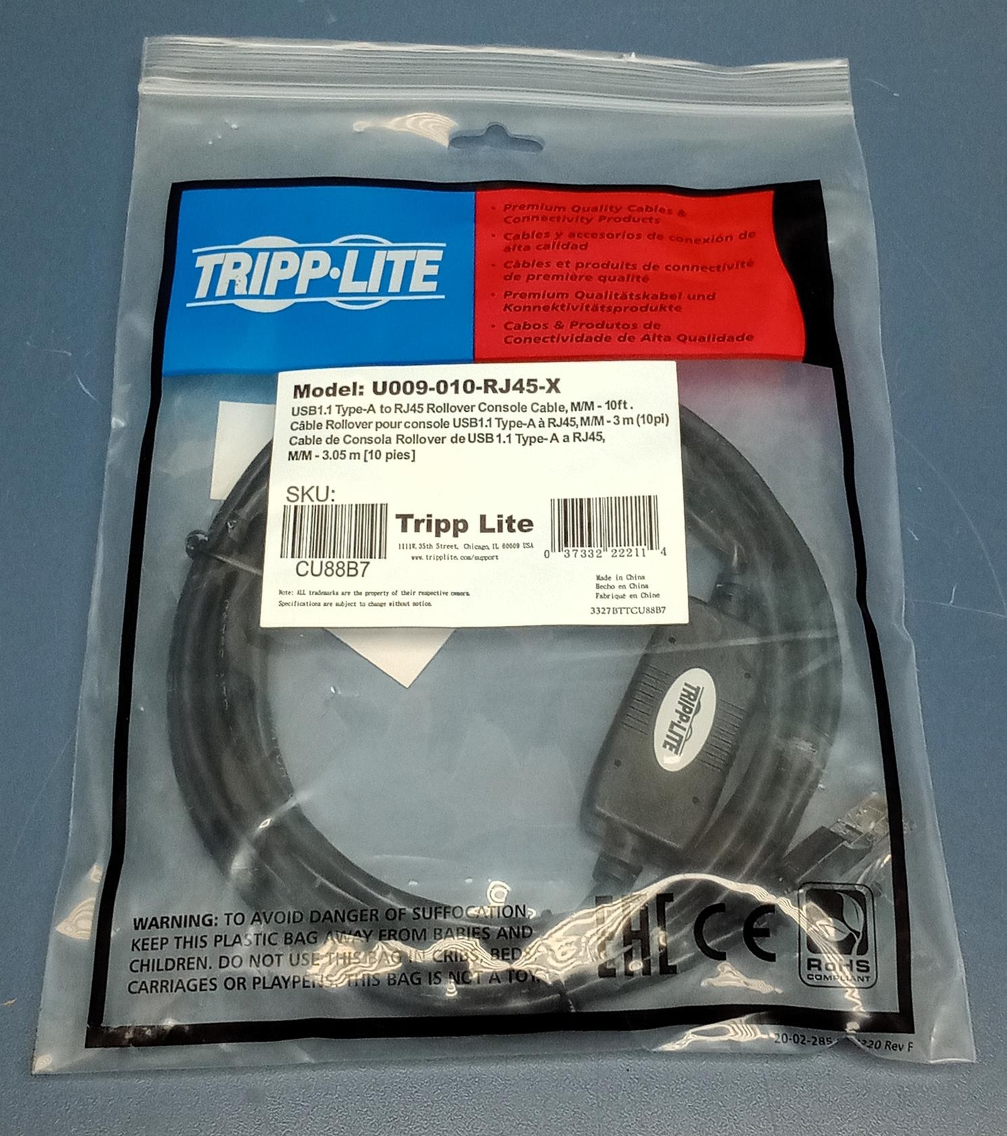 Tripp Lite USB-A to RJ45 Rollover Console Cable Cisco Compatible M/M 10ft CU88B7
