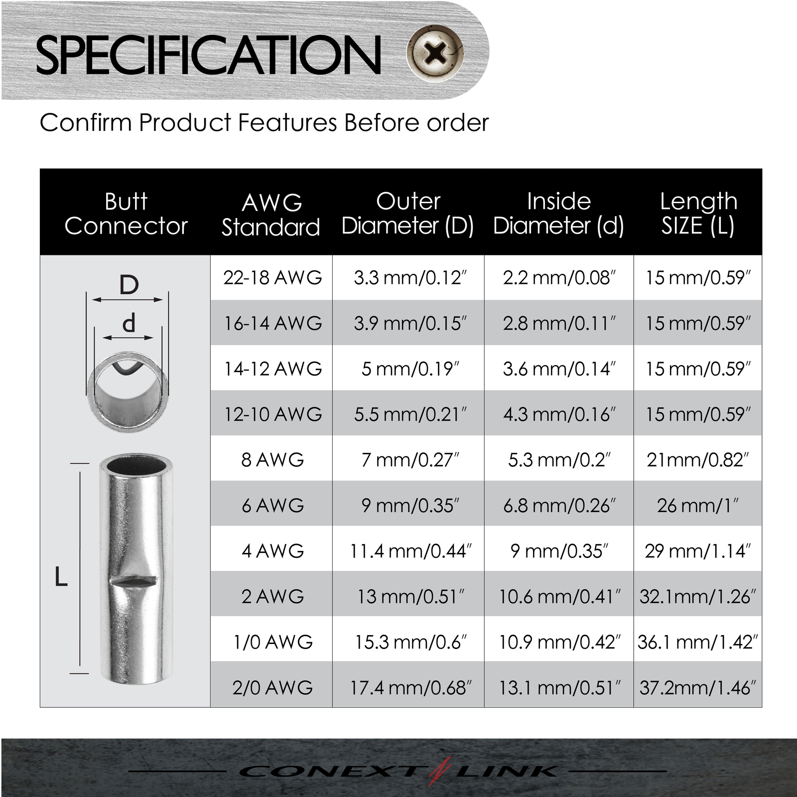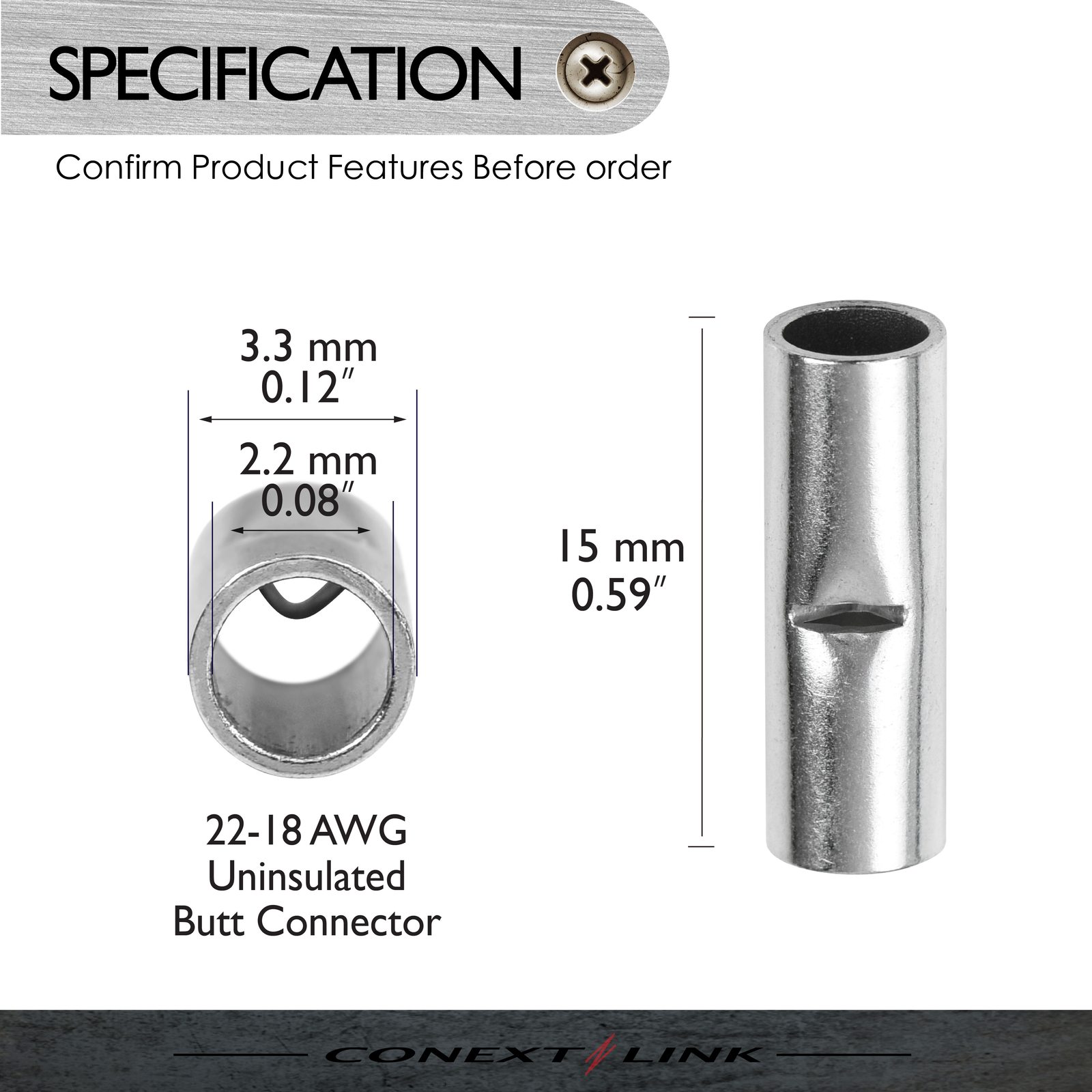 50 Butt Crimp Connector Uninsulated 22-18 GA gauge AWG Terminal Splice Car Radio