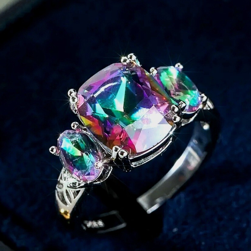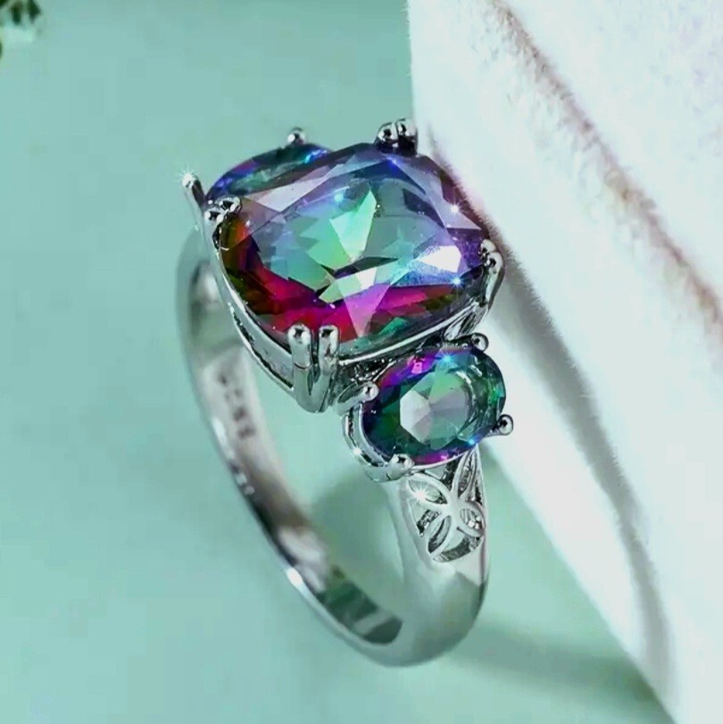 925 Sterling Silver Rainbow Mystical Fire Topaz Wedding Engagement Ring Size 6