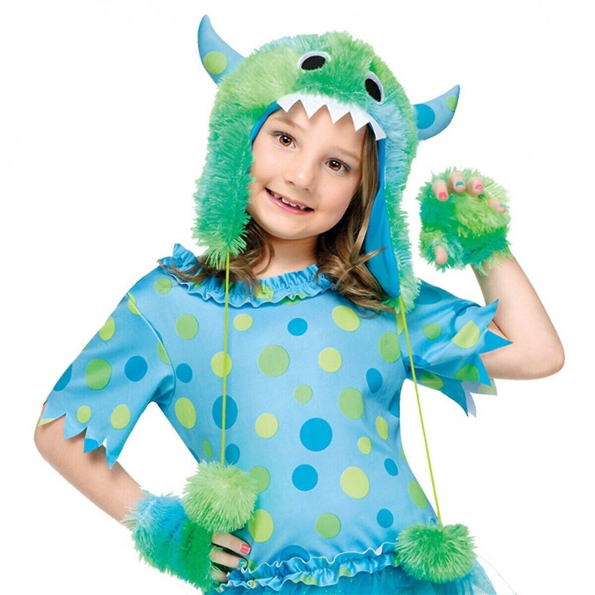 как выглядит 6pc Monster Miss Horned Polka Dot Hoodie Halloween Costume Cosplay Child M 8-10 фото