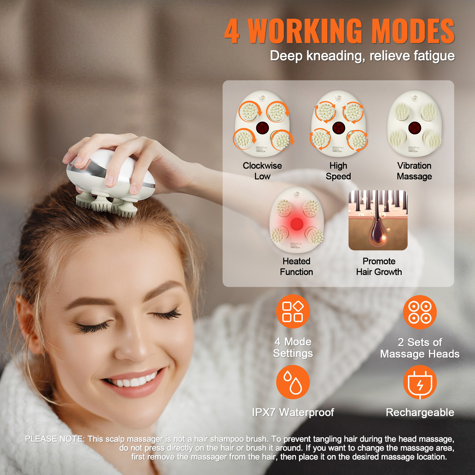 Electric Scalp Massager with Heat Rechargeable Head Massager Waterproof