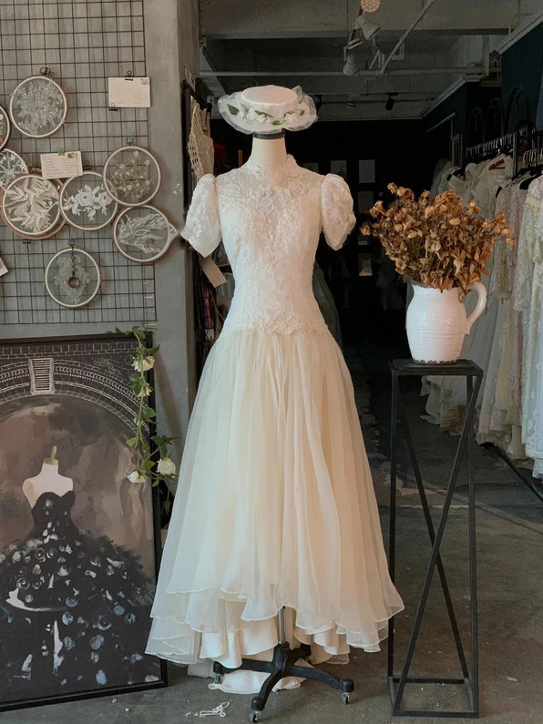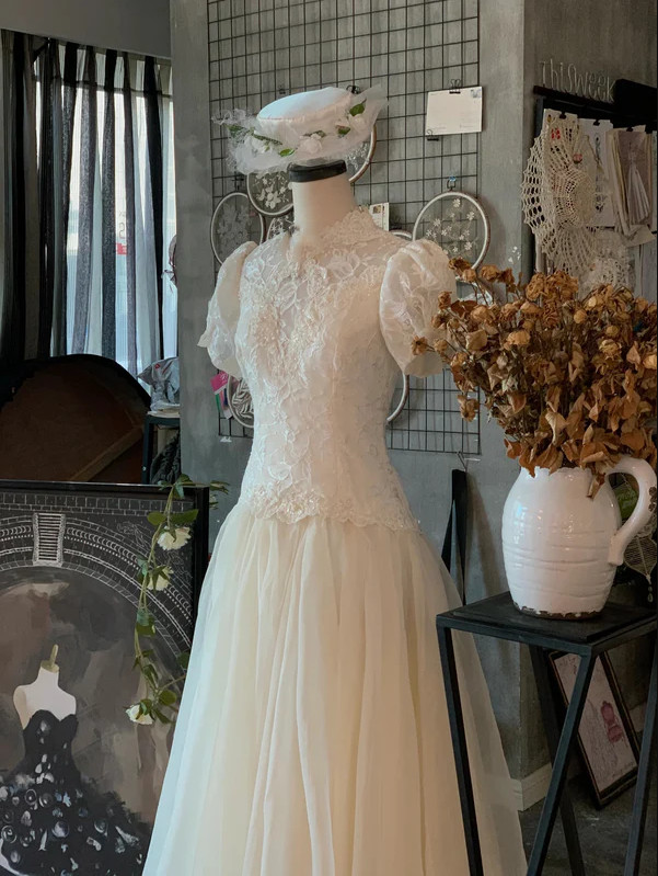 как выглядит Victorian Wedding Dresses Vintage Lace A Line Short Sleeves 1960s Bridal Gowns фото