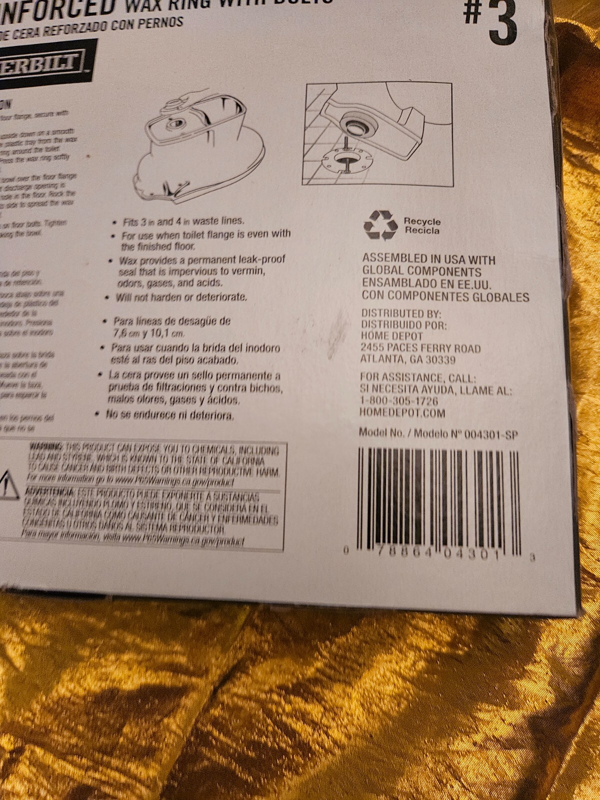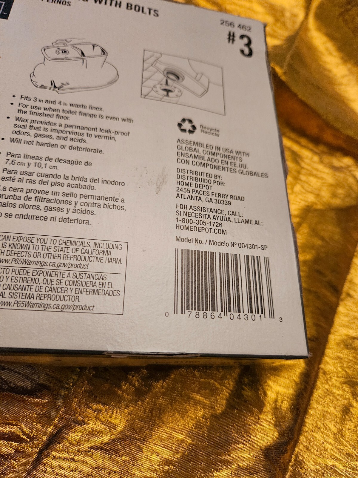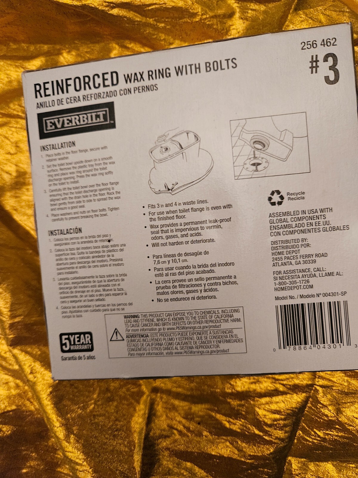 NEW REINFORCED WAX RING WITH BOLTS by EVERBILT 3 256 462 Flange for Alignment
