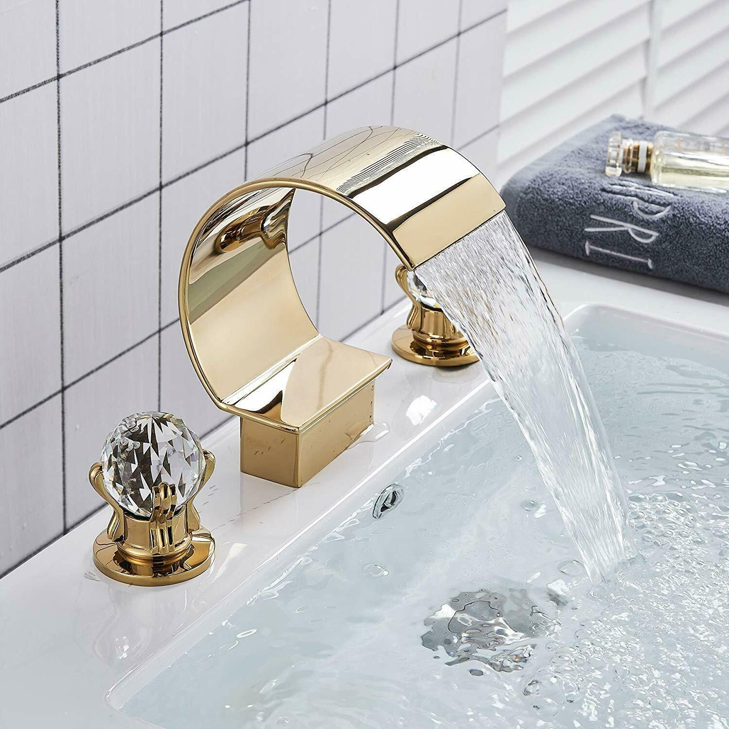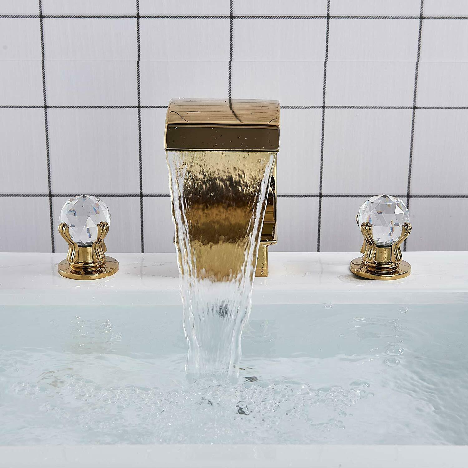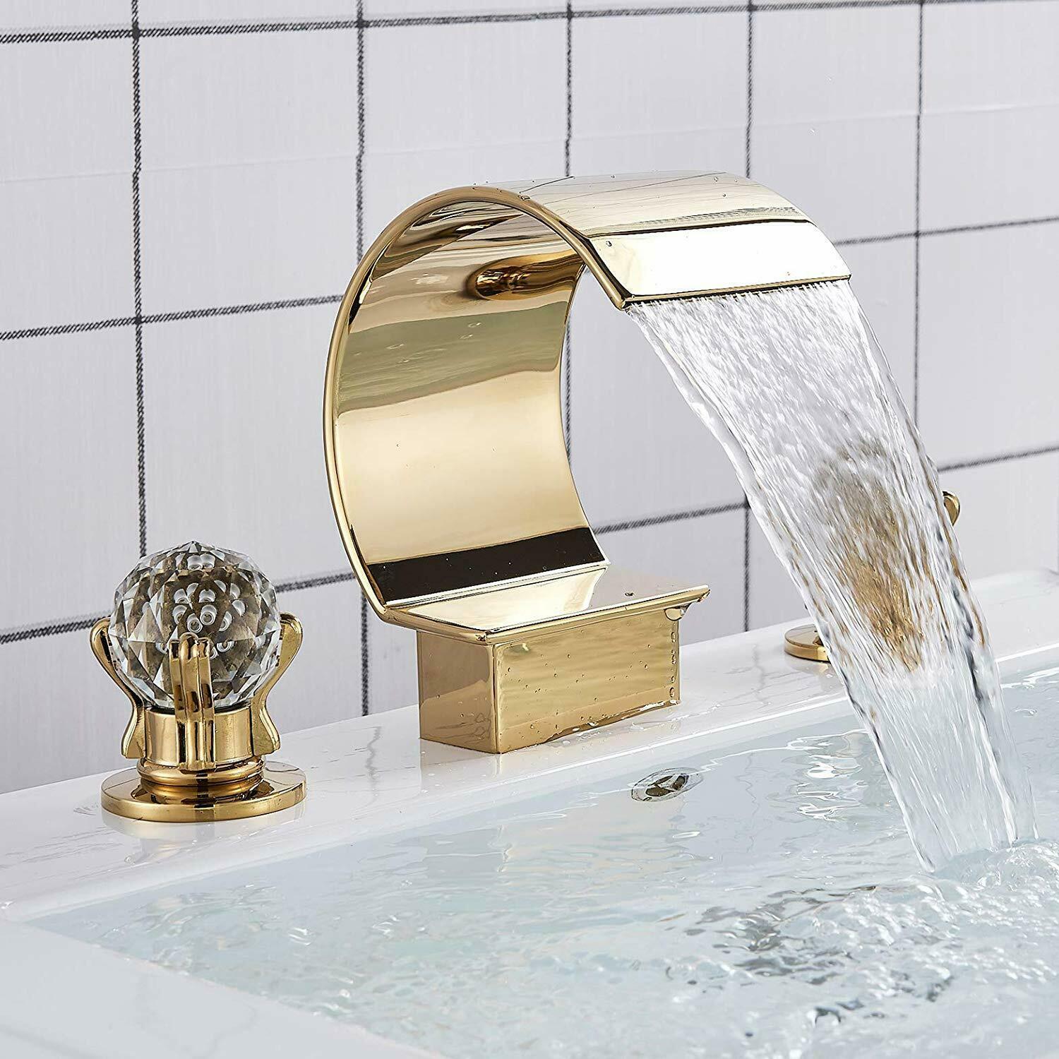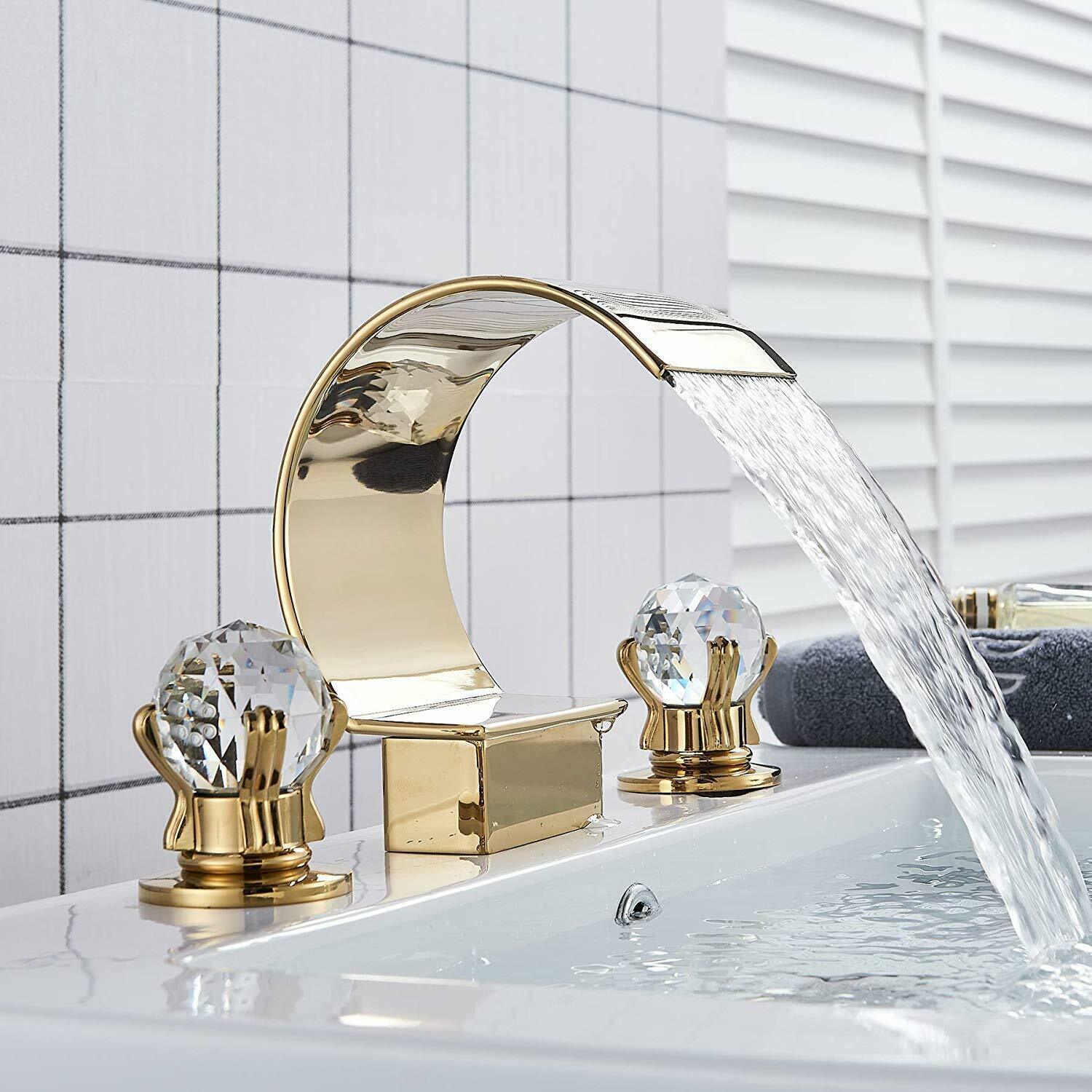 Widespread Brass Bathroom Faucet Basin 3 Hole Waterfall Vanity Sink Mixer Tap