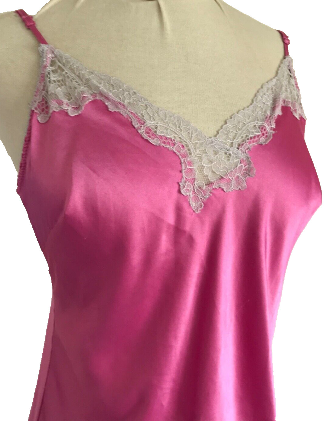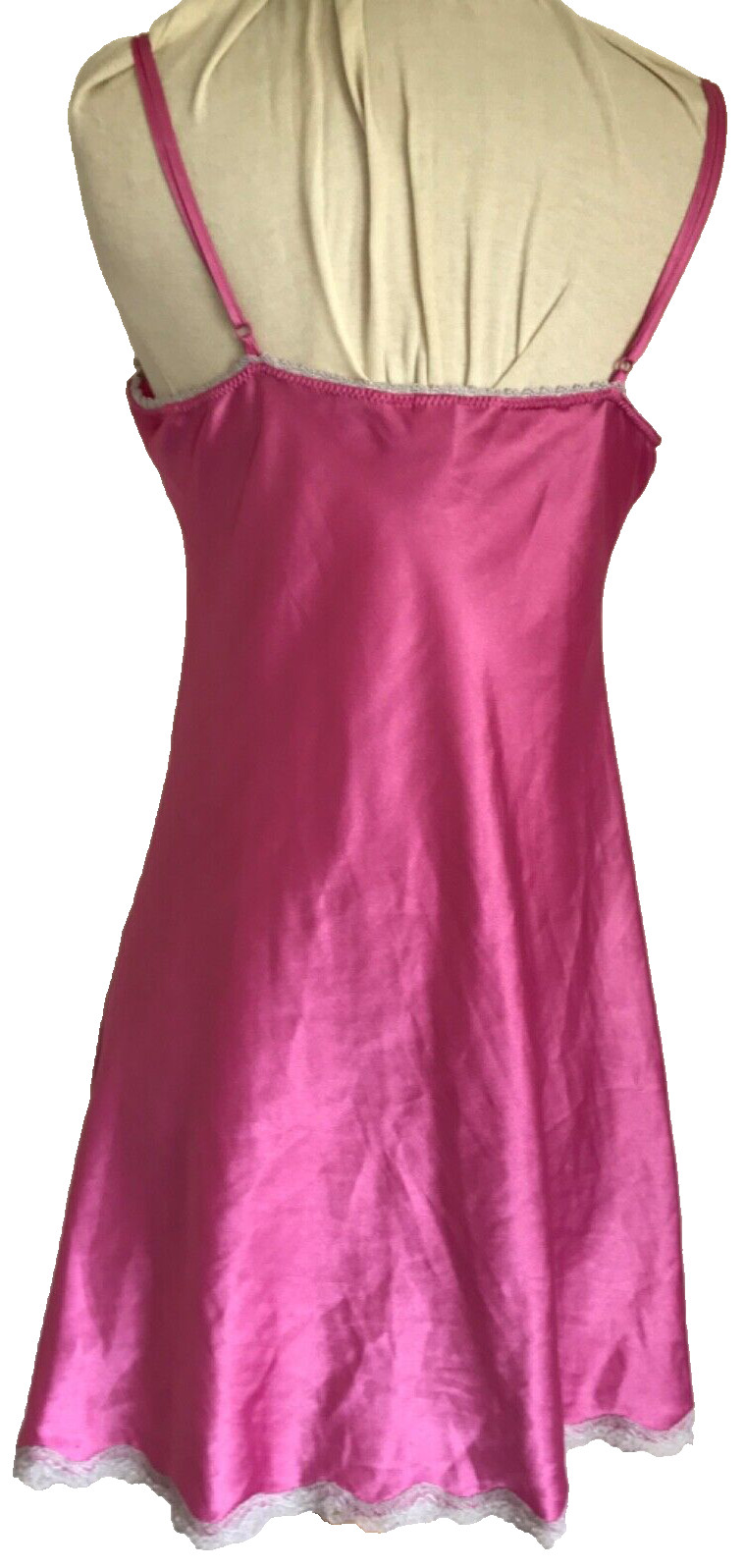 как выглядит Victoria s Secret Satin Lingerie, Chemise Babydoll Pink M Lace Adjustable Dress фото