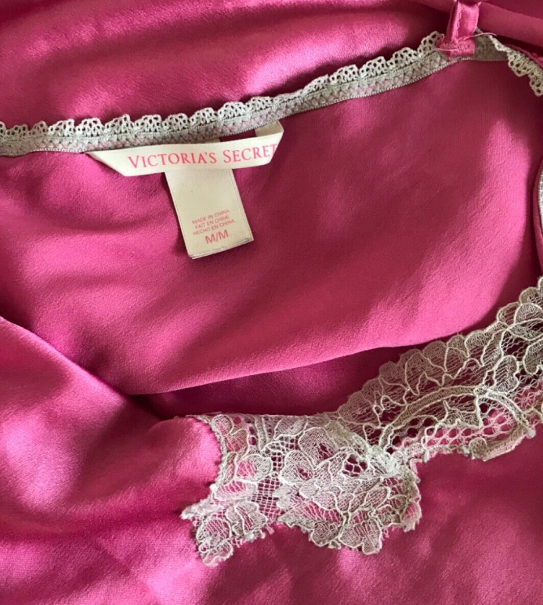 Victoria s Secret Satin Lingerie, Chemise Babydoll Pink M Lace Adjustable Dress