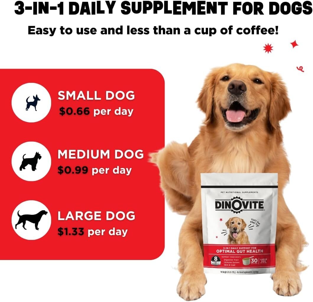 30 Day Supply, Small Dogs, Dinovite Probiotic Supplement for Dogs - 1-18 lbs